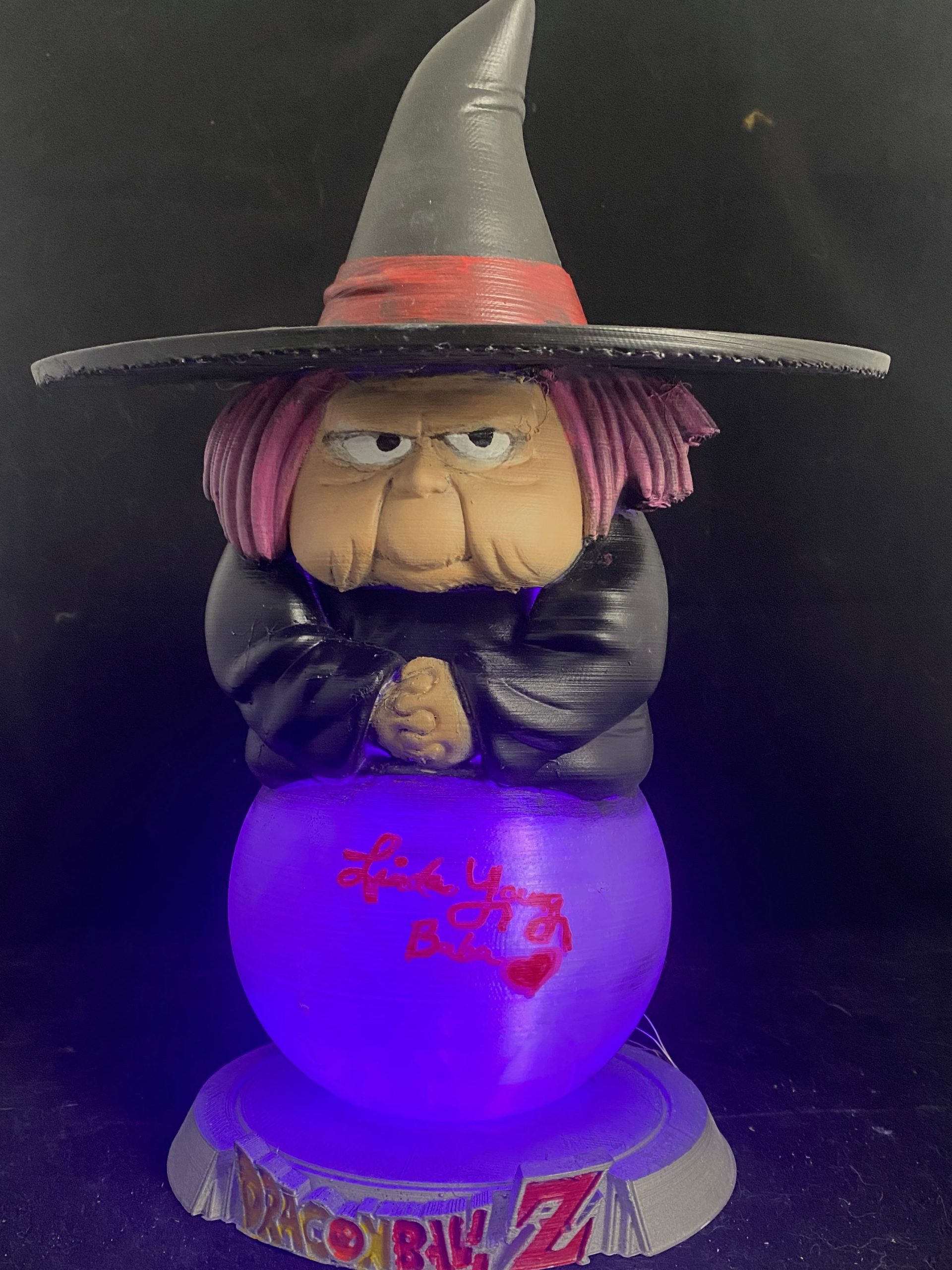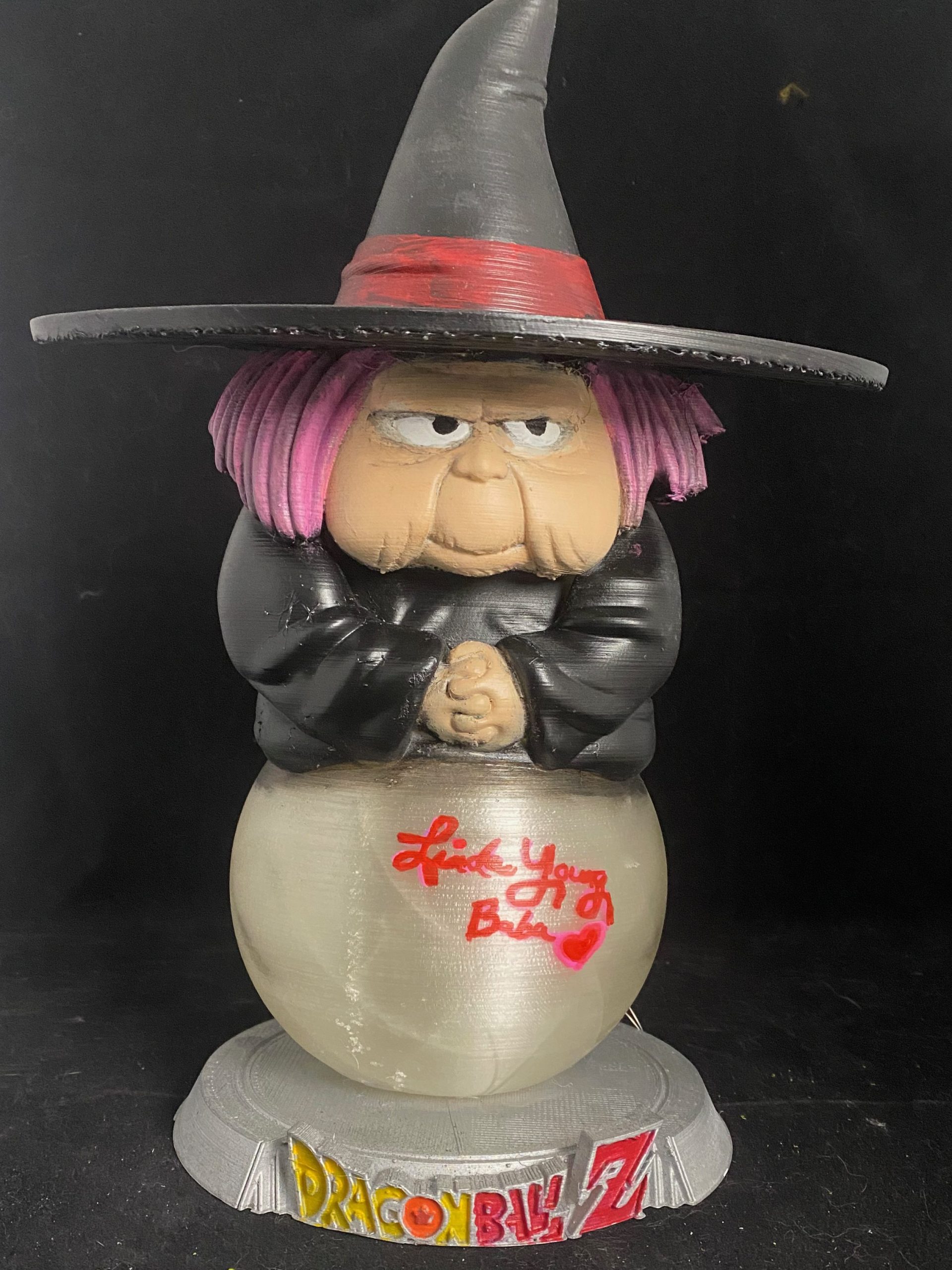 This is a character from Dragonball who is voiced by Linda Young, also the original voice of Frieza. Linda was kind enough to autograph both my Baba and Frieza sculptures.