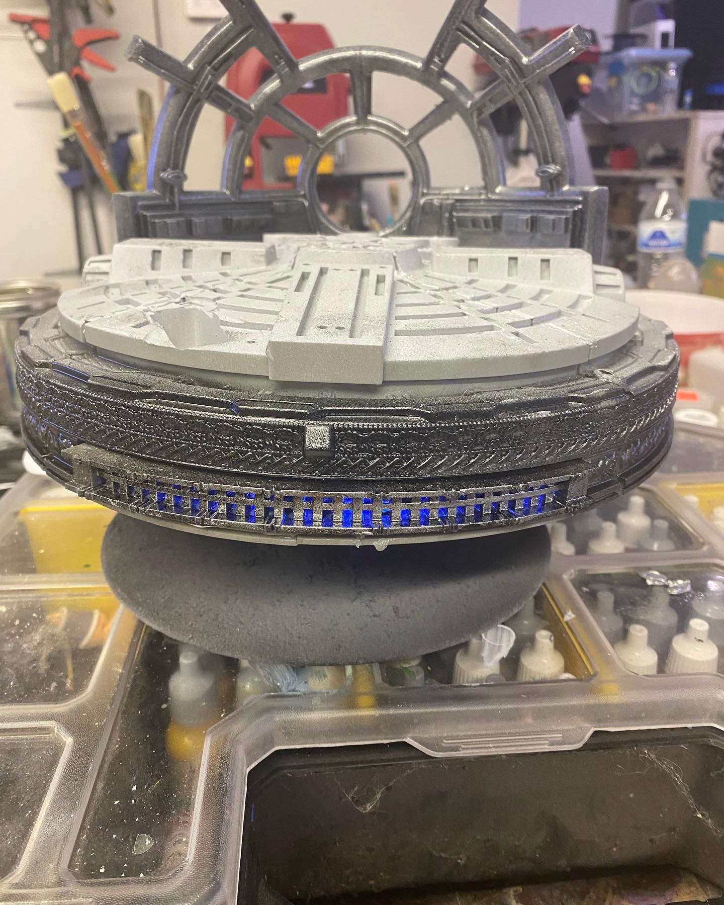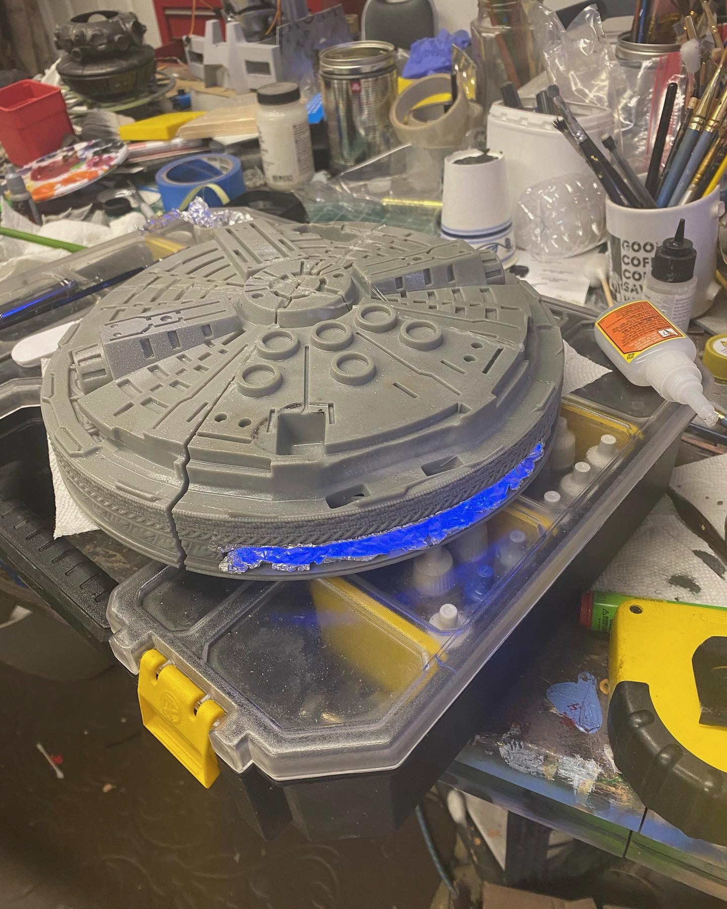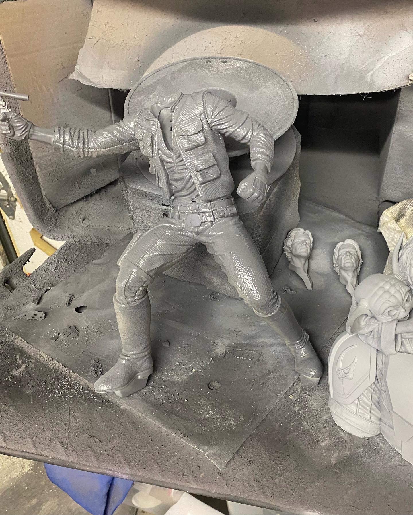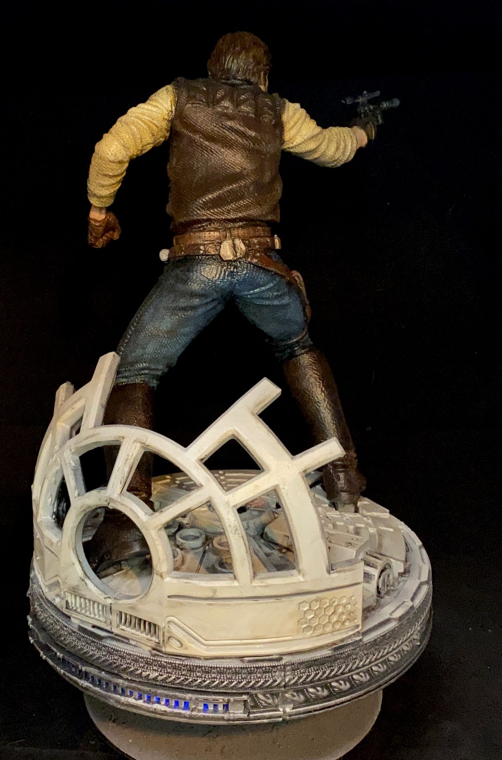 This piece is from the Star Wars arm of the Wicked design team. It features swappable heads (young and old Han), as well as an LED lit base.