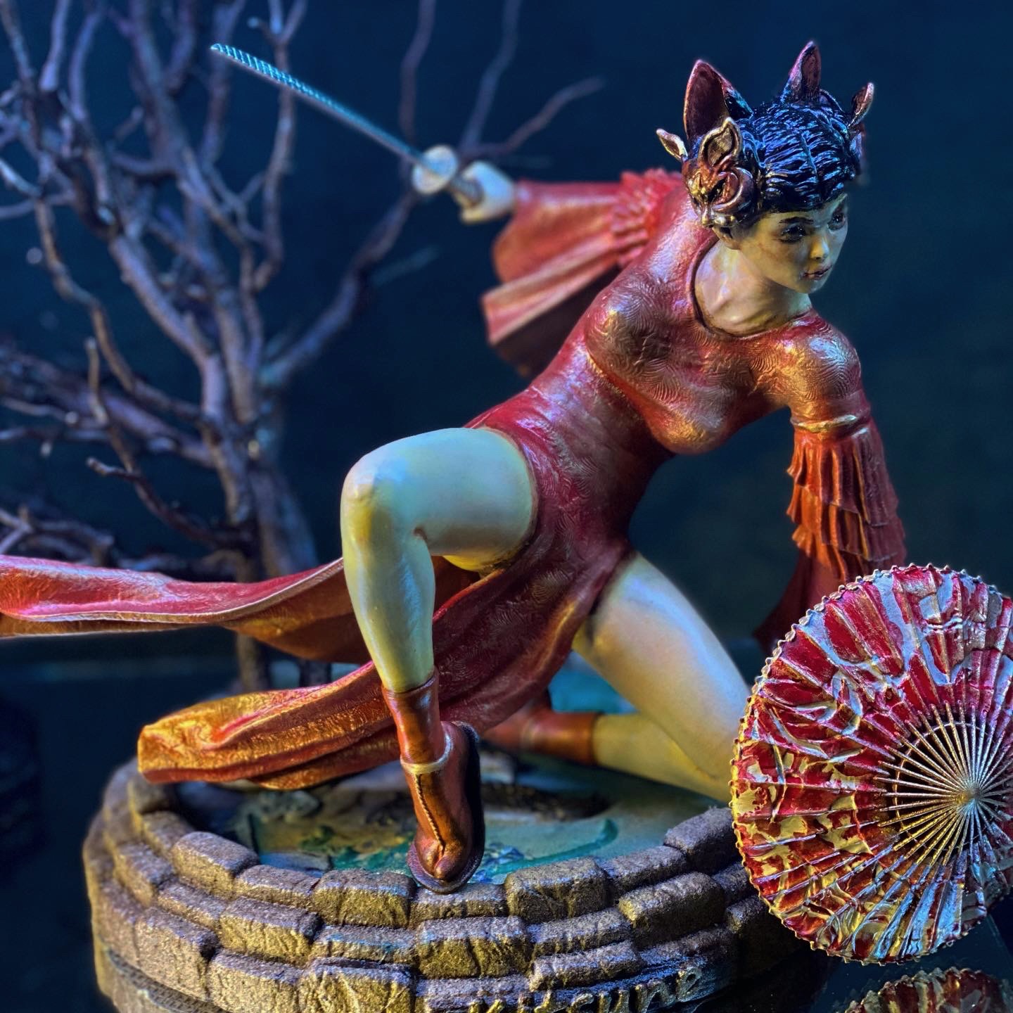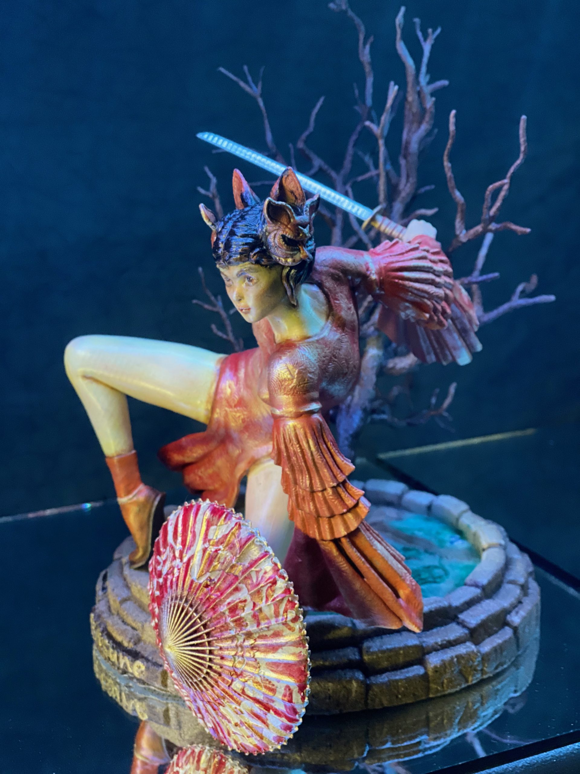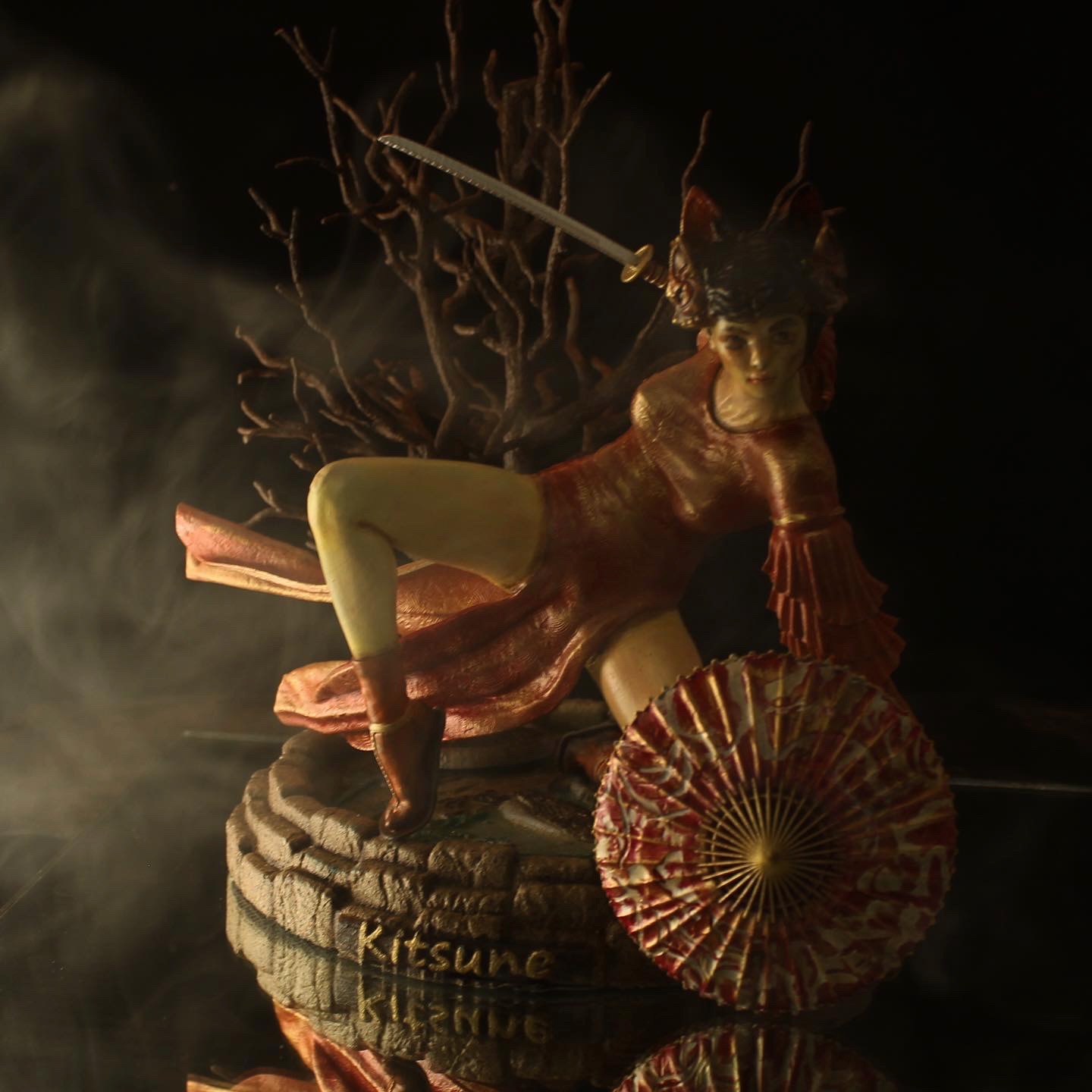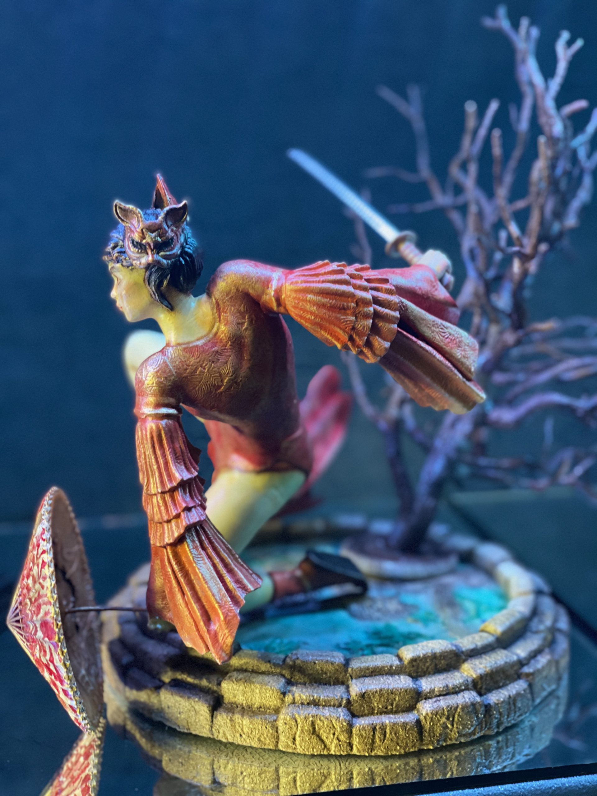 This stands as one of my favorite pieces. It is a diorama of a samurai heroine, named Kitsune. As far as I know, she is entirely from the mind of Walades, and has never existed otherwise, until now.