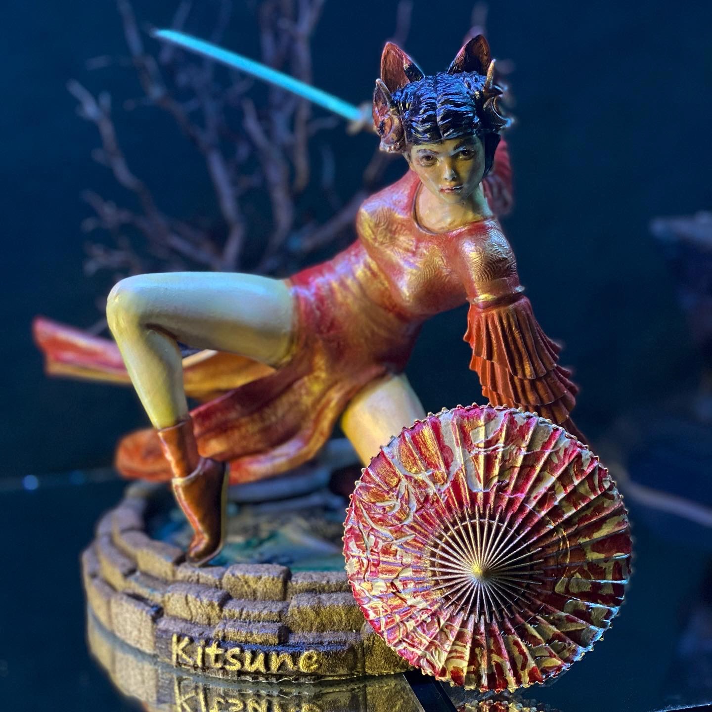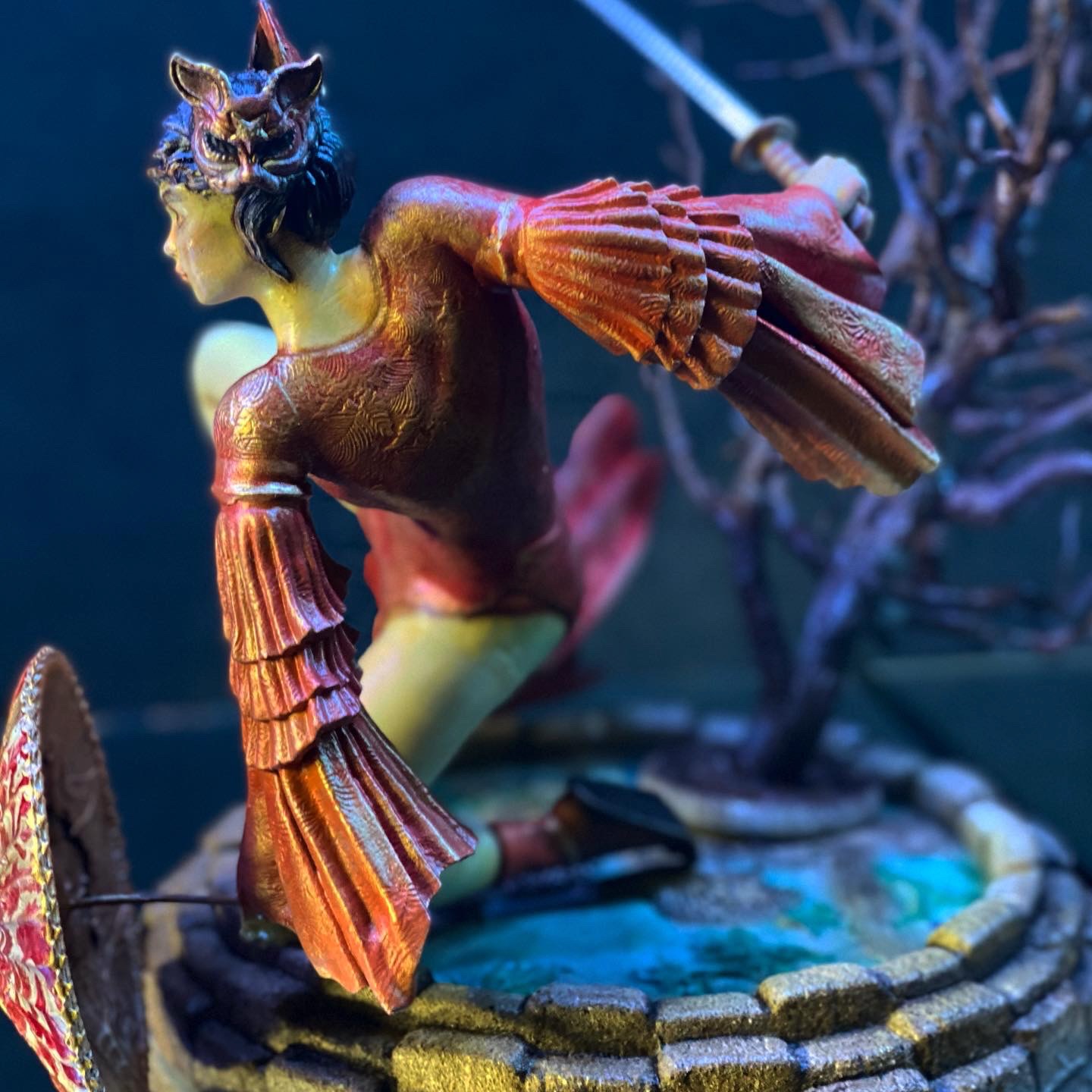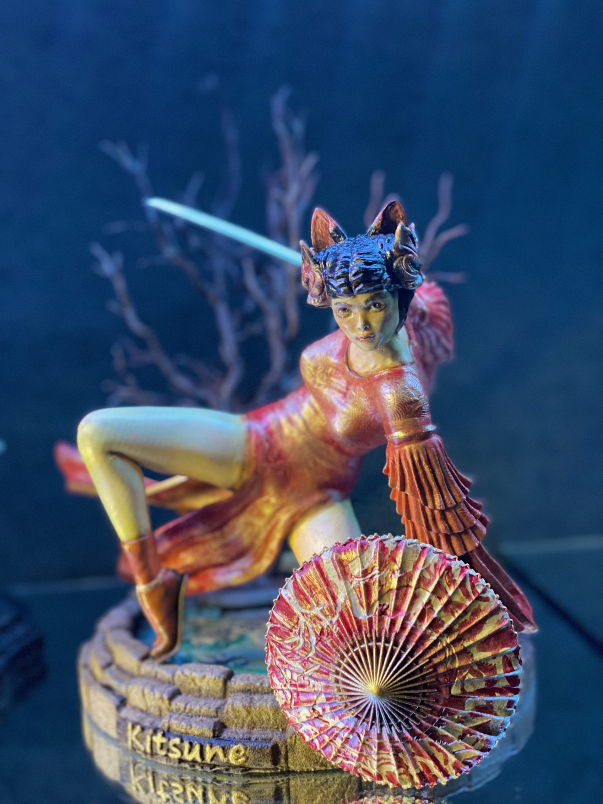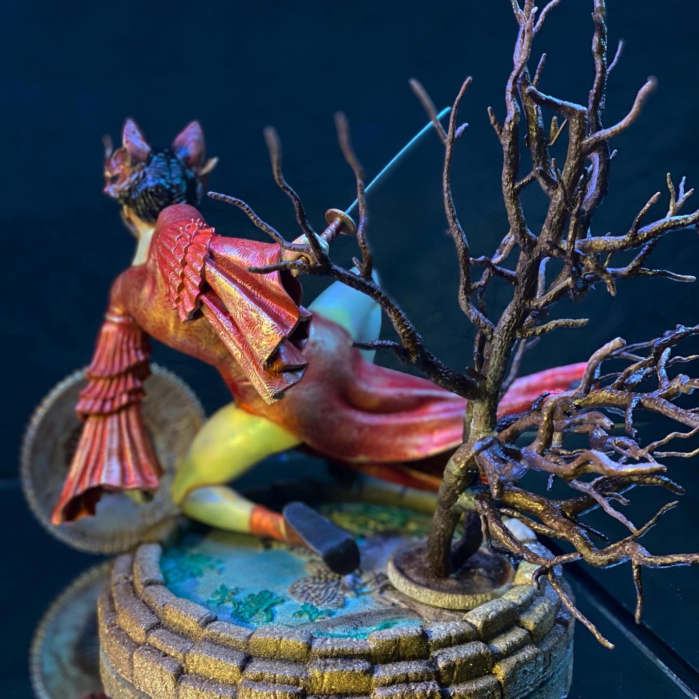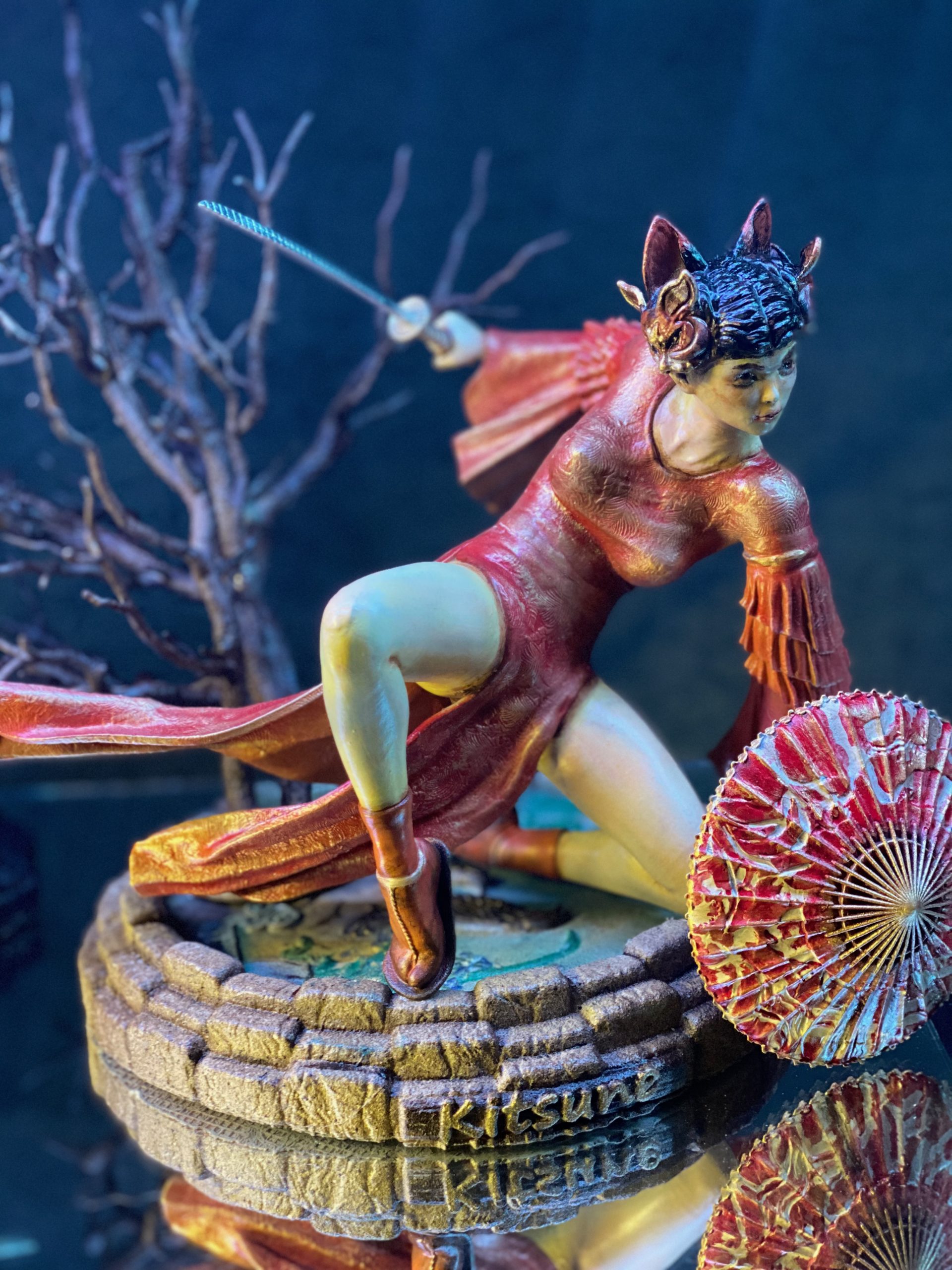 This stands as one of my favorite pieces. It is a diorama of a samurai heroine, named Kitsune. As far as I know, she is entirely from the mind of Walades, and has never existed otherwise, until now.