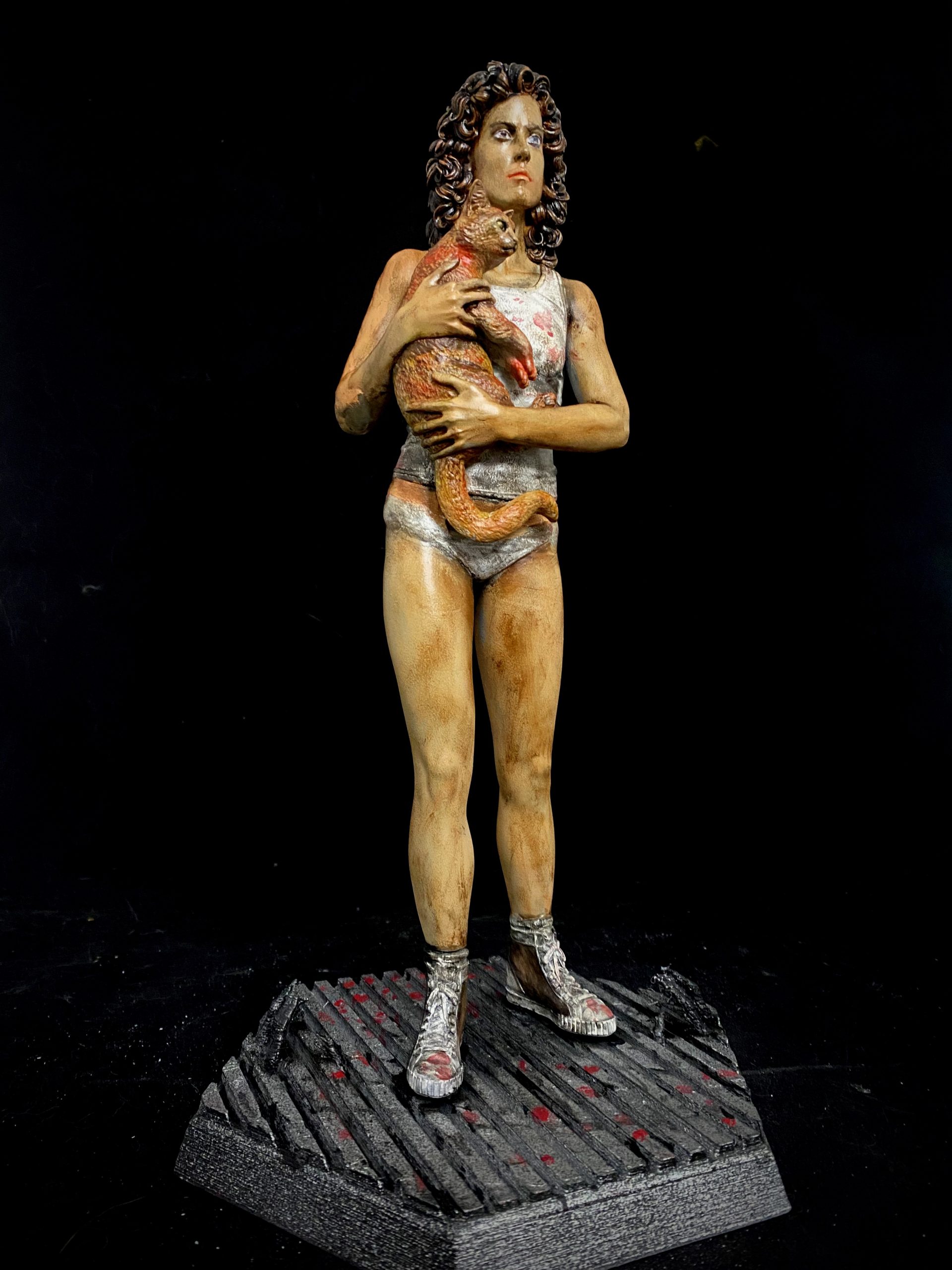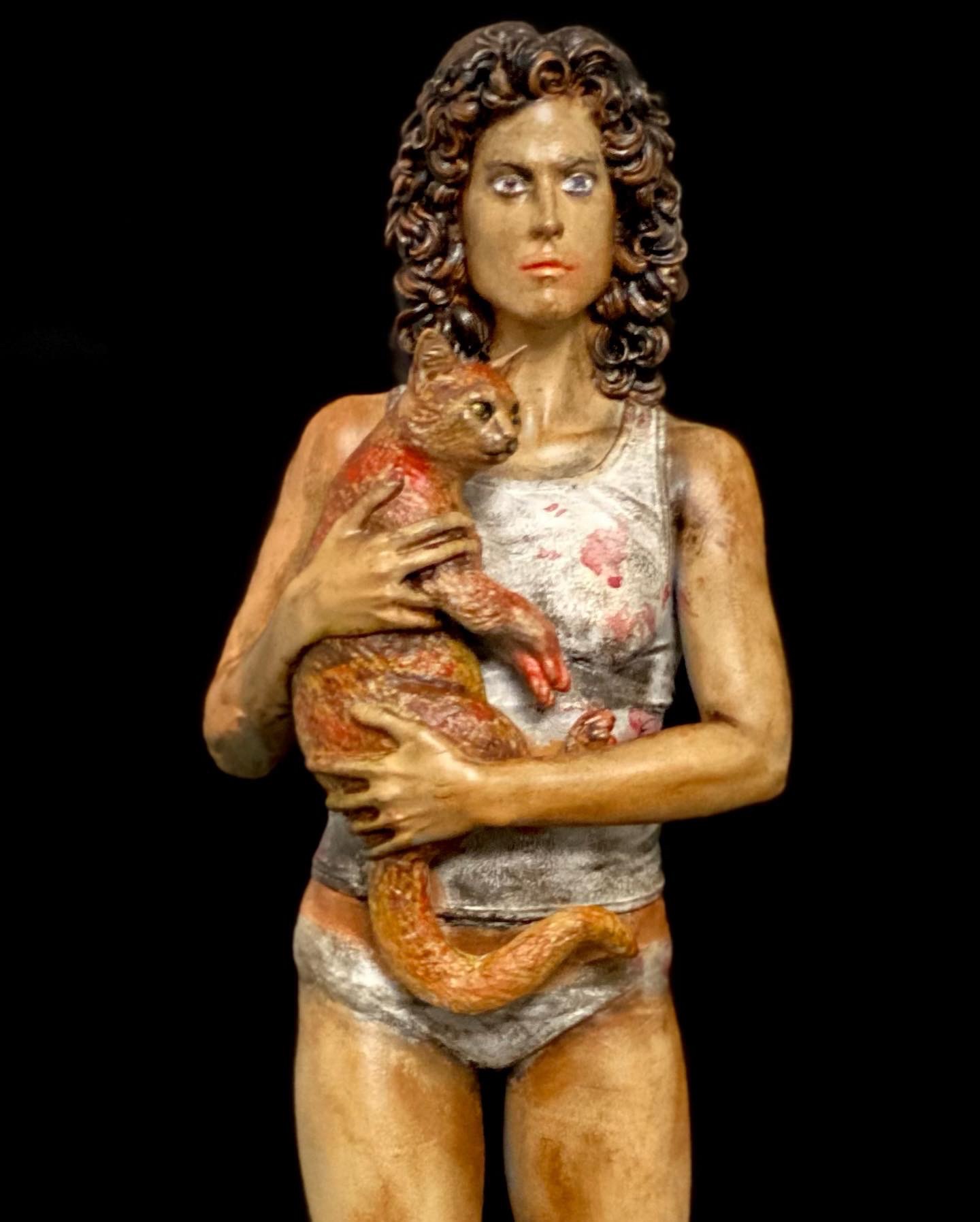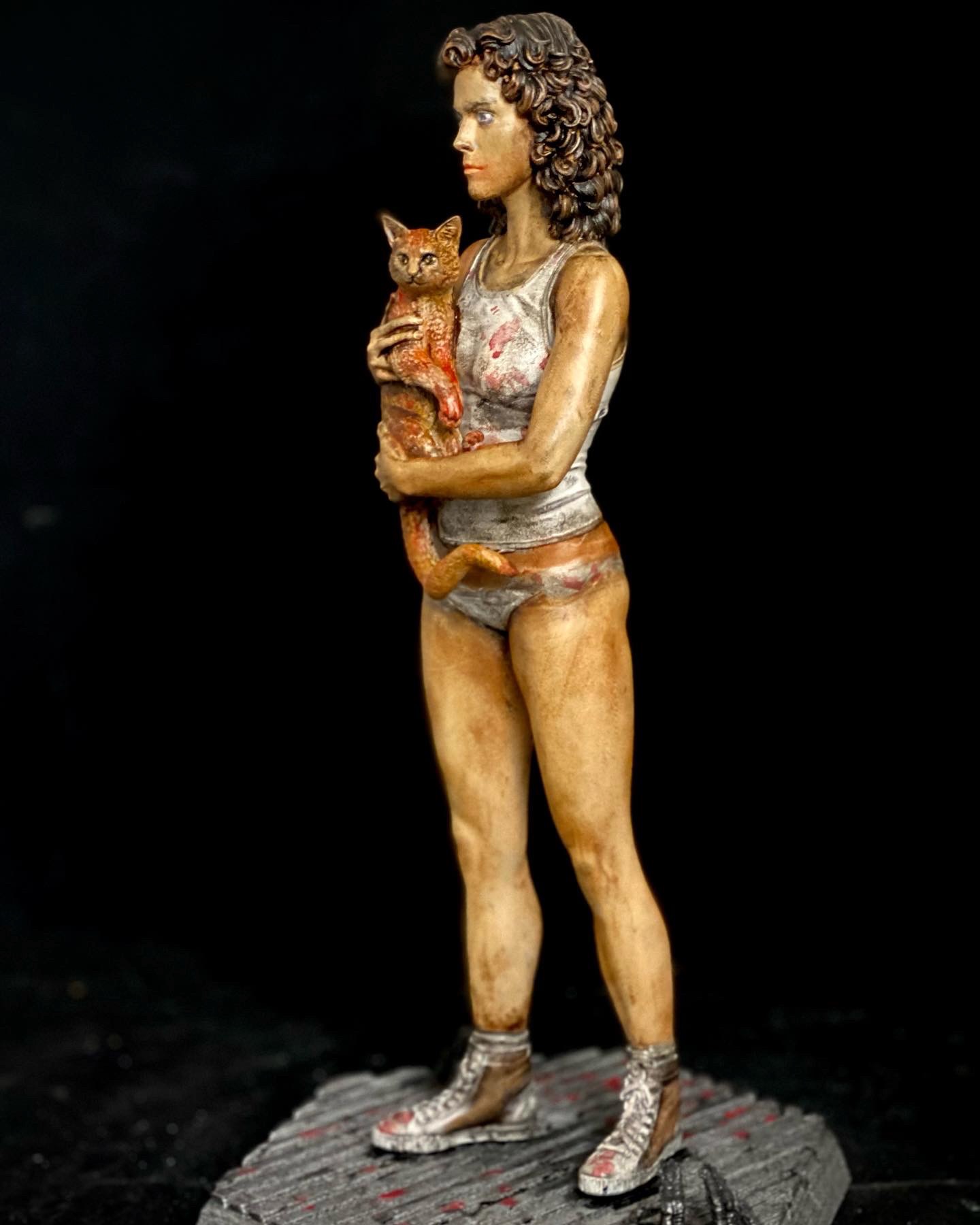 This is another great scuplt by Stepanov, this one a fanart take on the iconic end scene of Ripley holding her cat Jonesy, in the movie Alien. Little does she know, the claws of the alien are coming up from underneath.