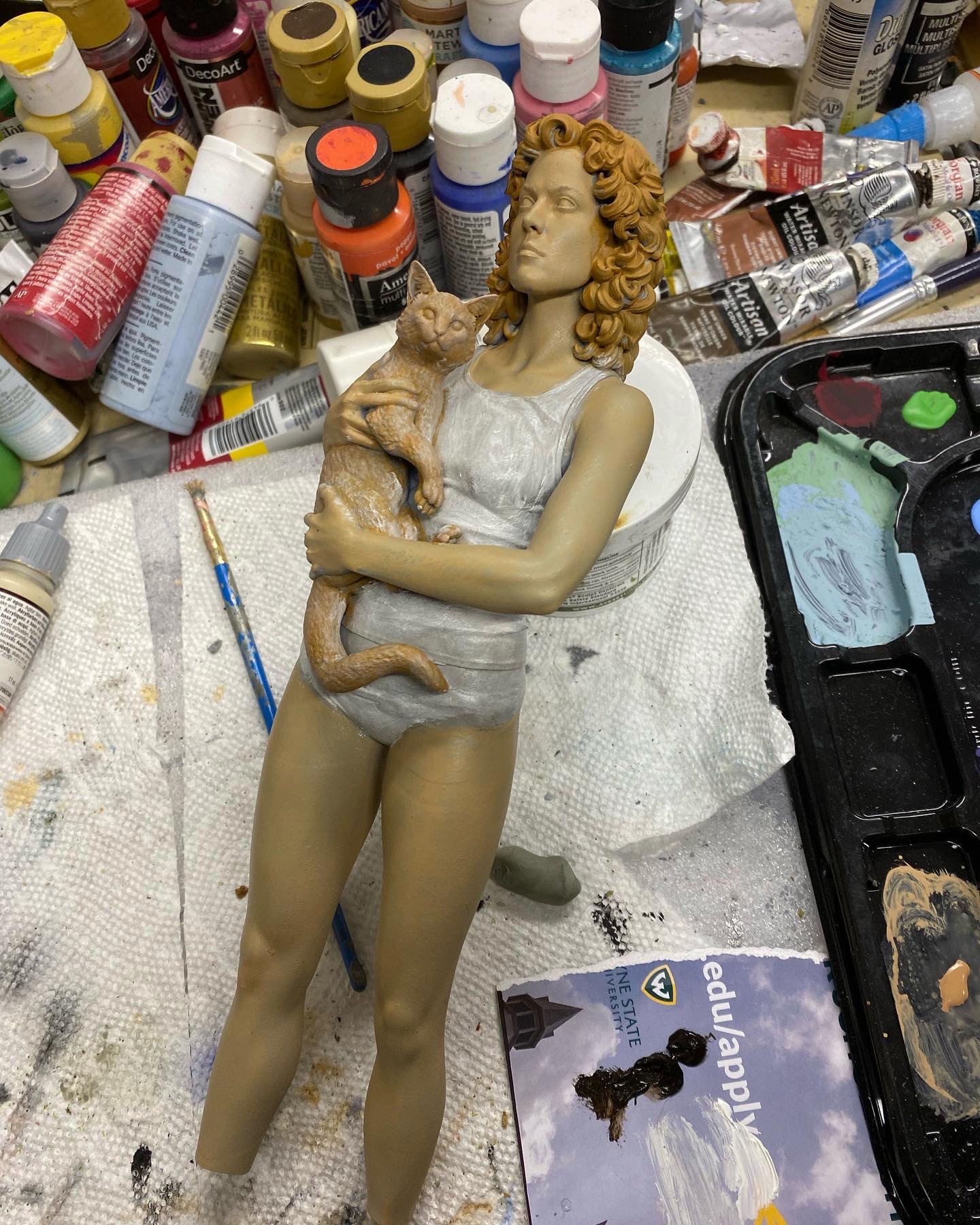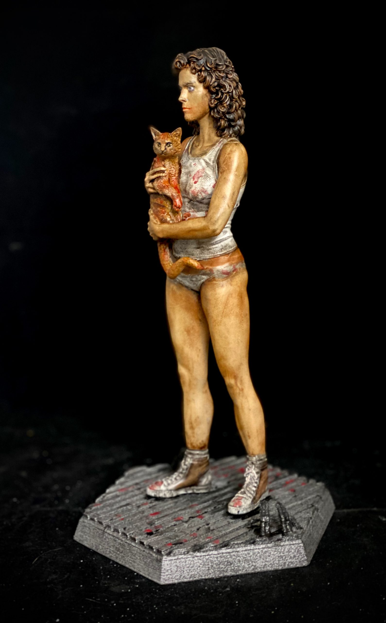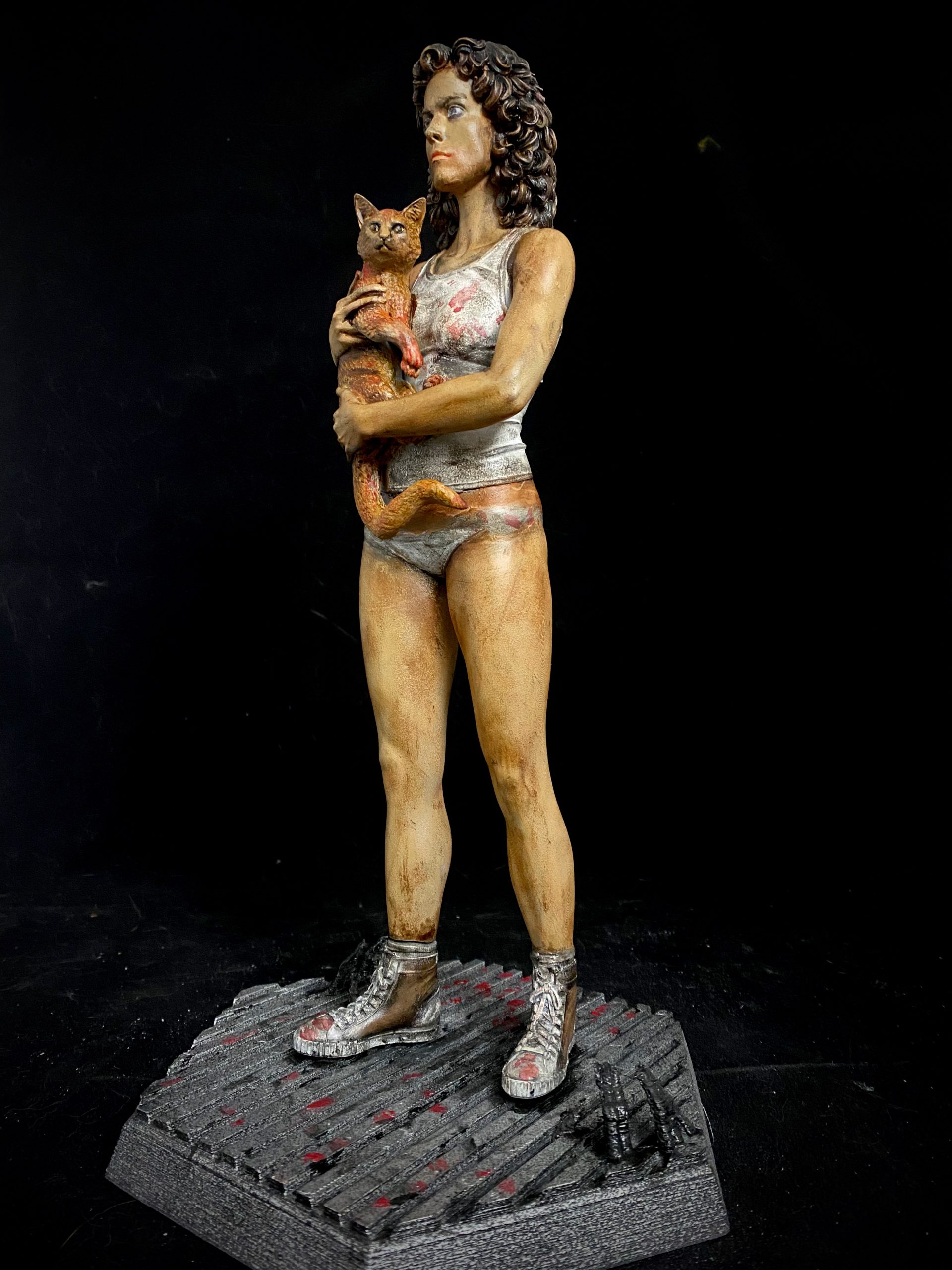 This is another great scuplt by Stepanov, this one a fanart take on the iconic end scene of Ripley holding her cat Jonesy, in the movie Alien. Little does she know, the claws of the alien are coming up from underneath.