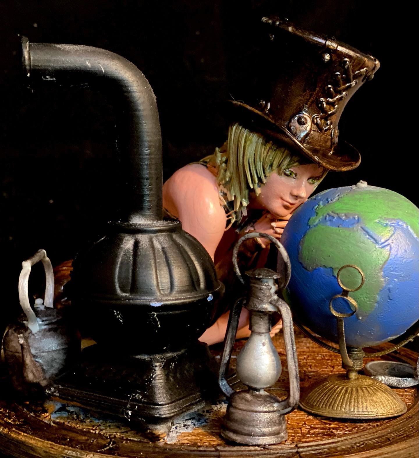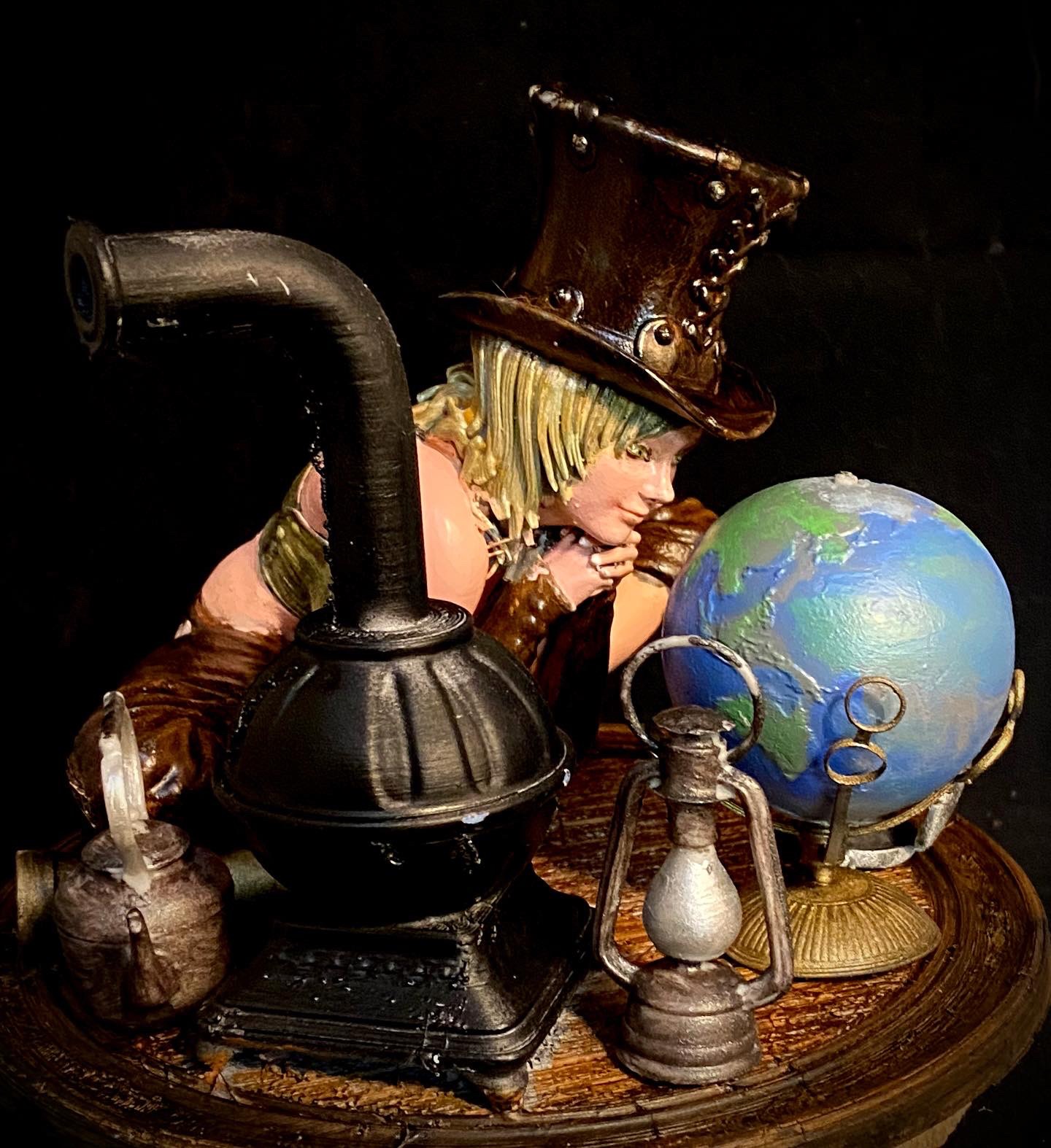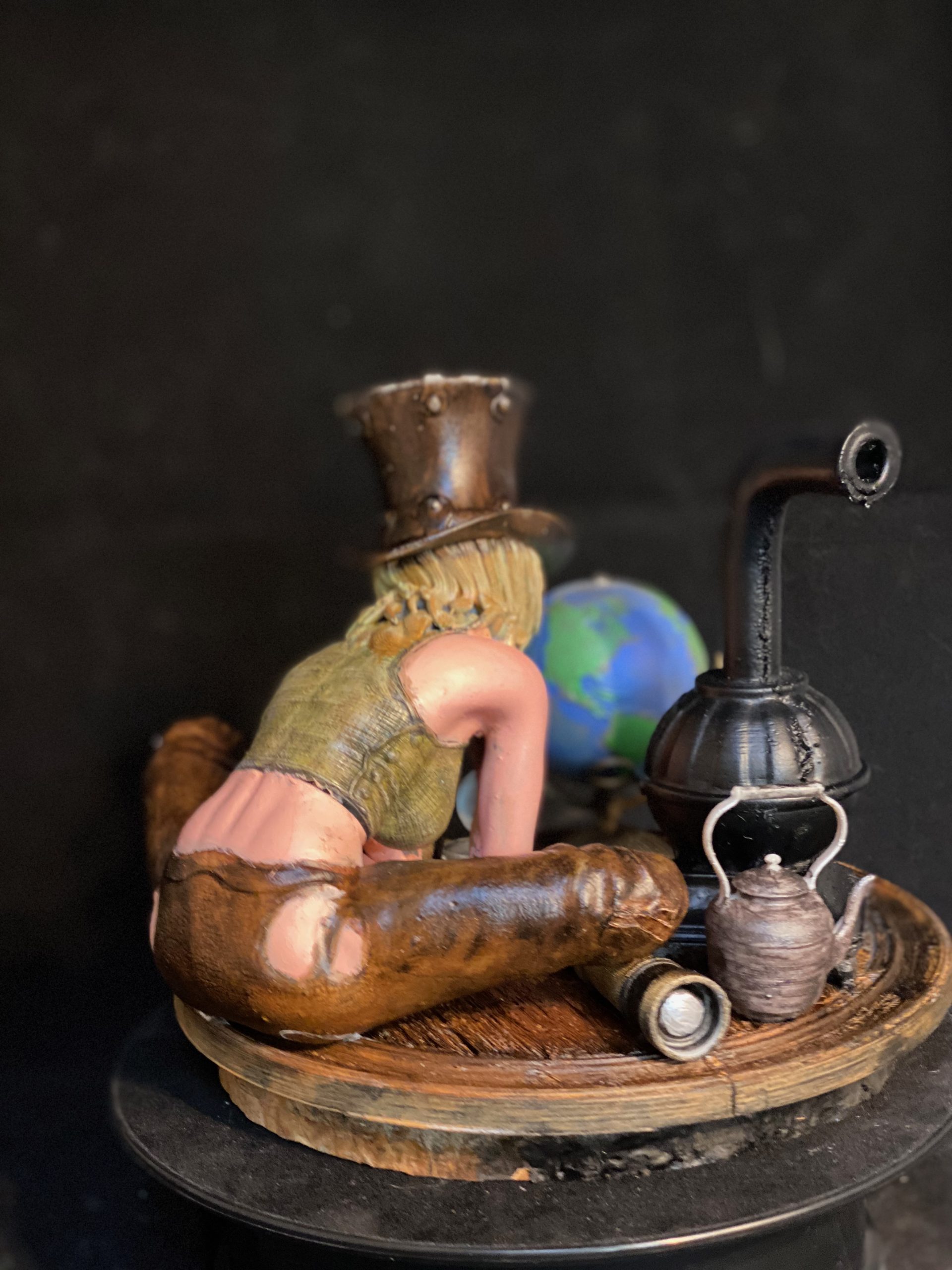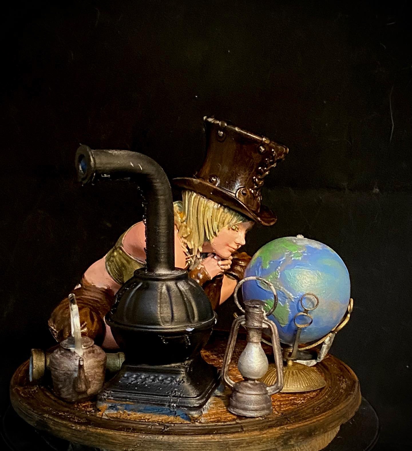 This is a great digital sculpt by Walades, showing a young explorer, looking over a globe and planning her next discovery. I loved this piece and created some merch from it.