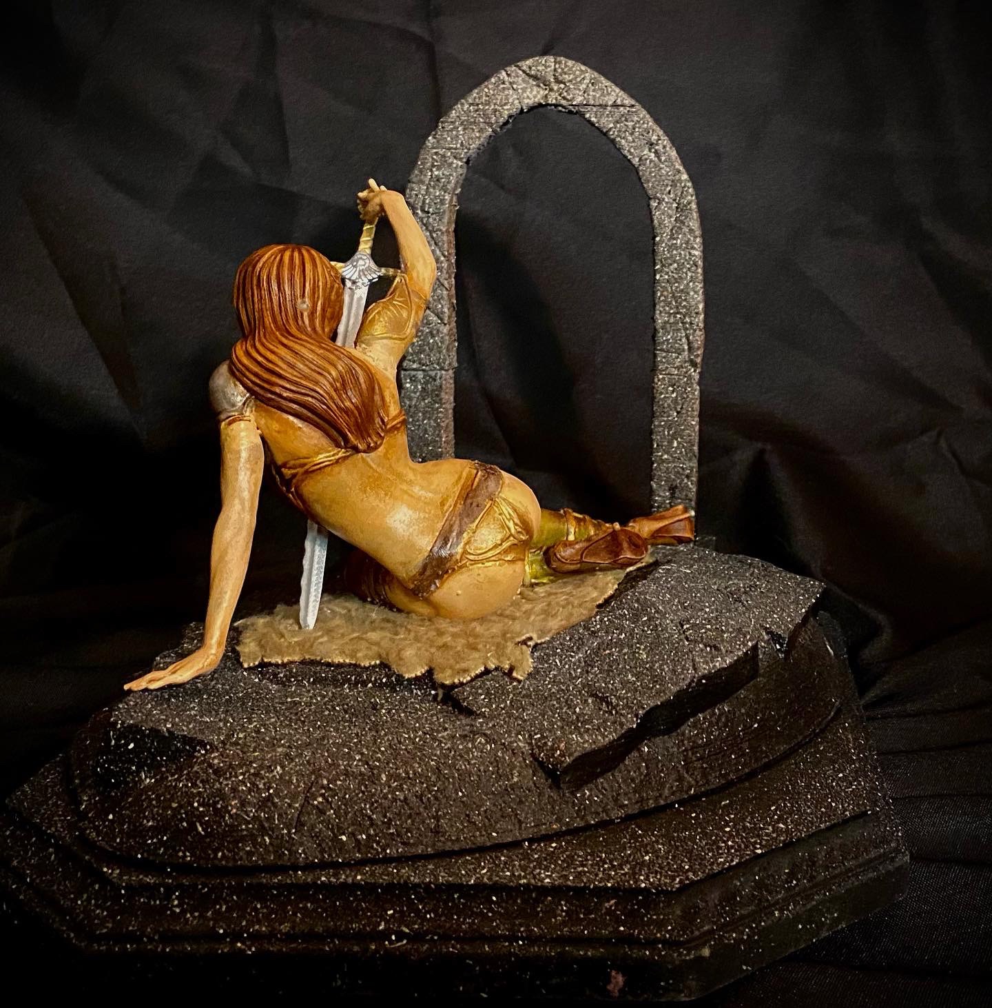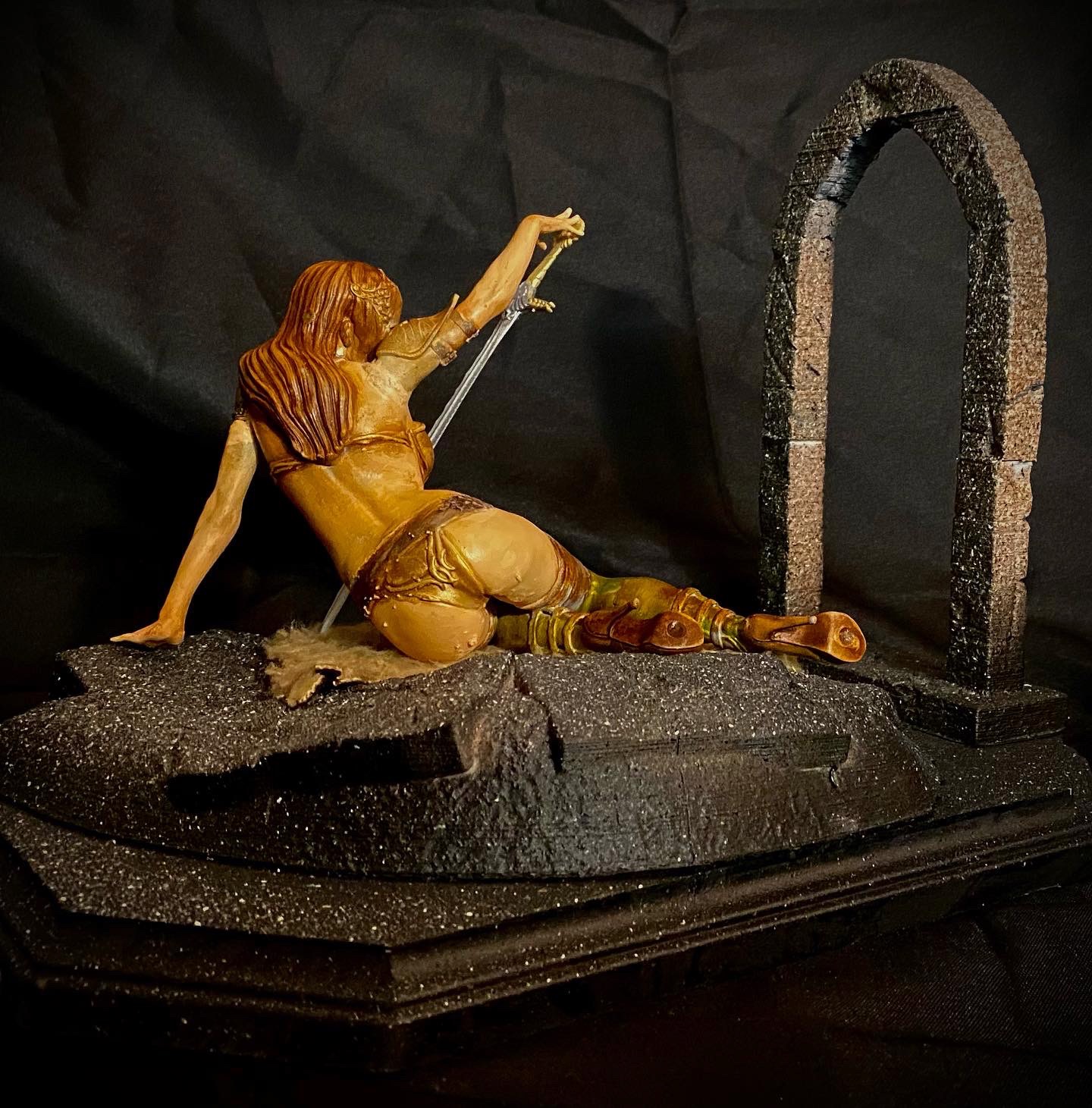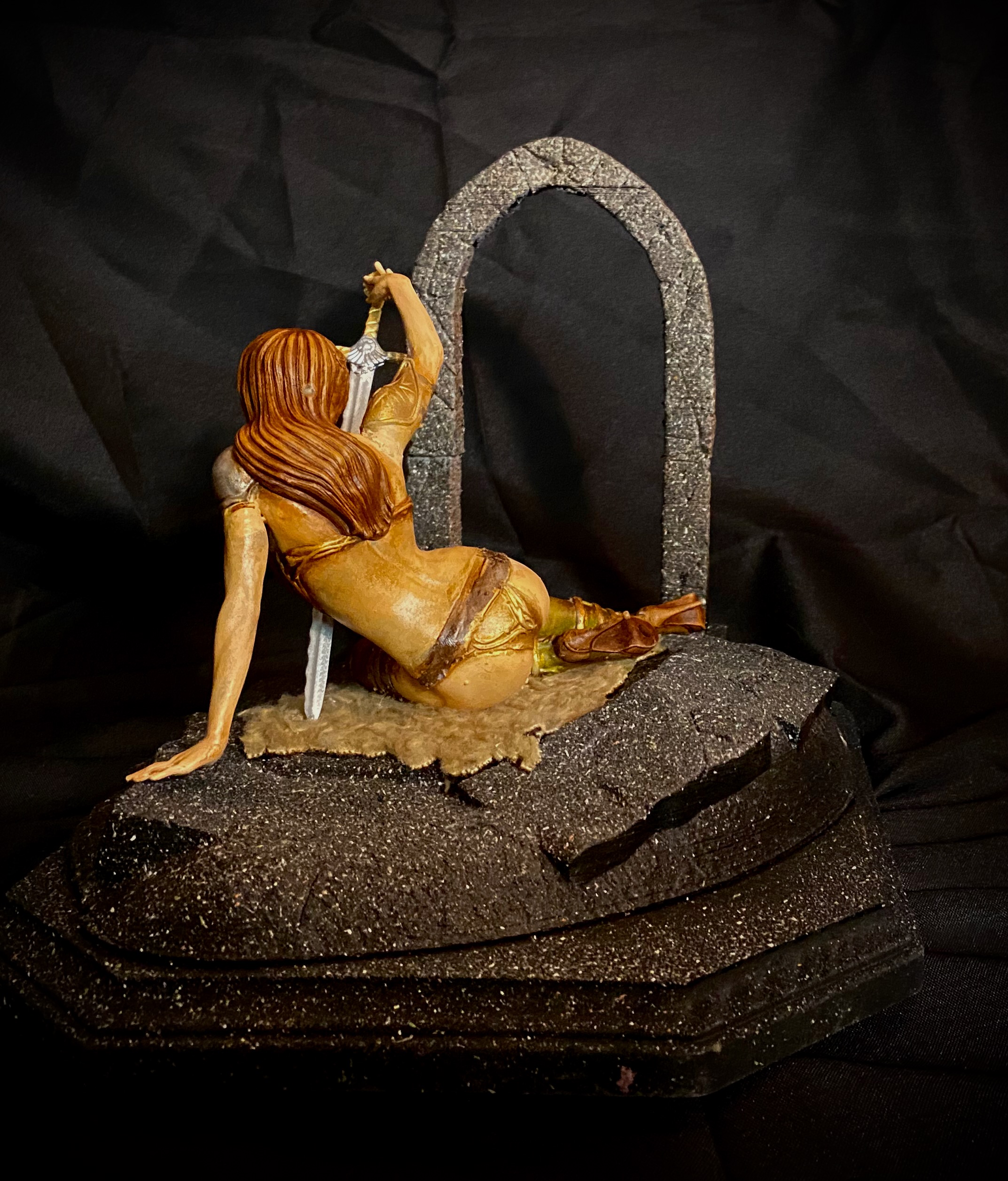 This diorama shows a lady with her “lover”, which in this case is her longsword. She gazes at its beauty, in love with the power it gives her. This was digitally sculpted by Walades.