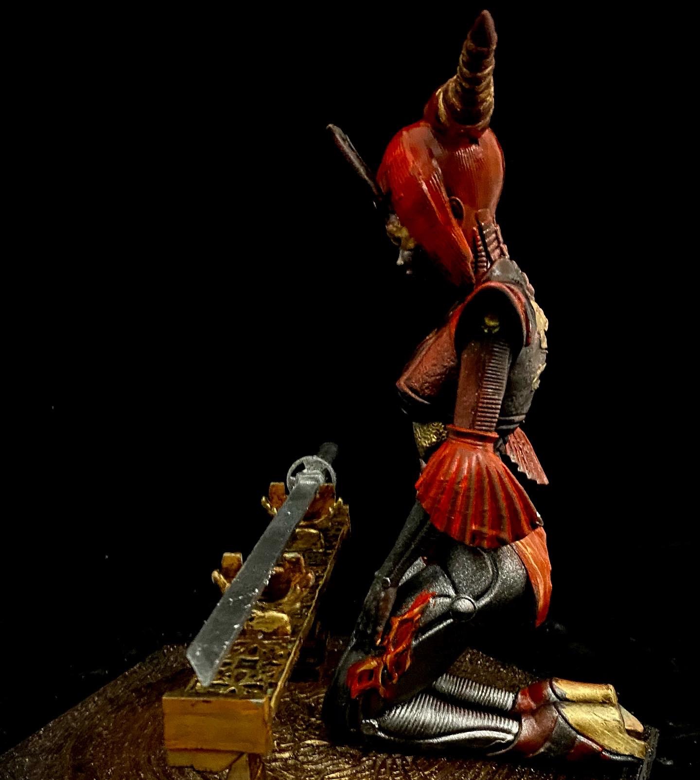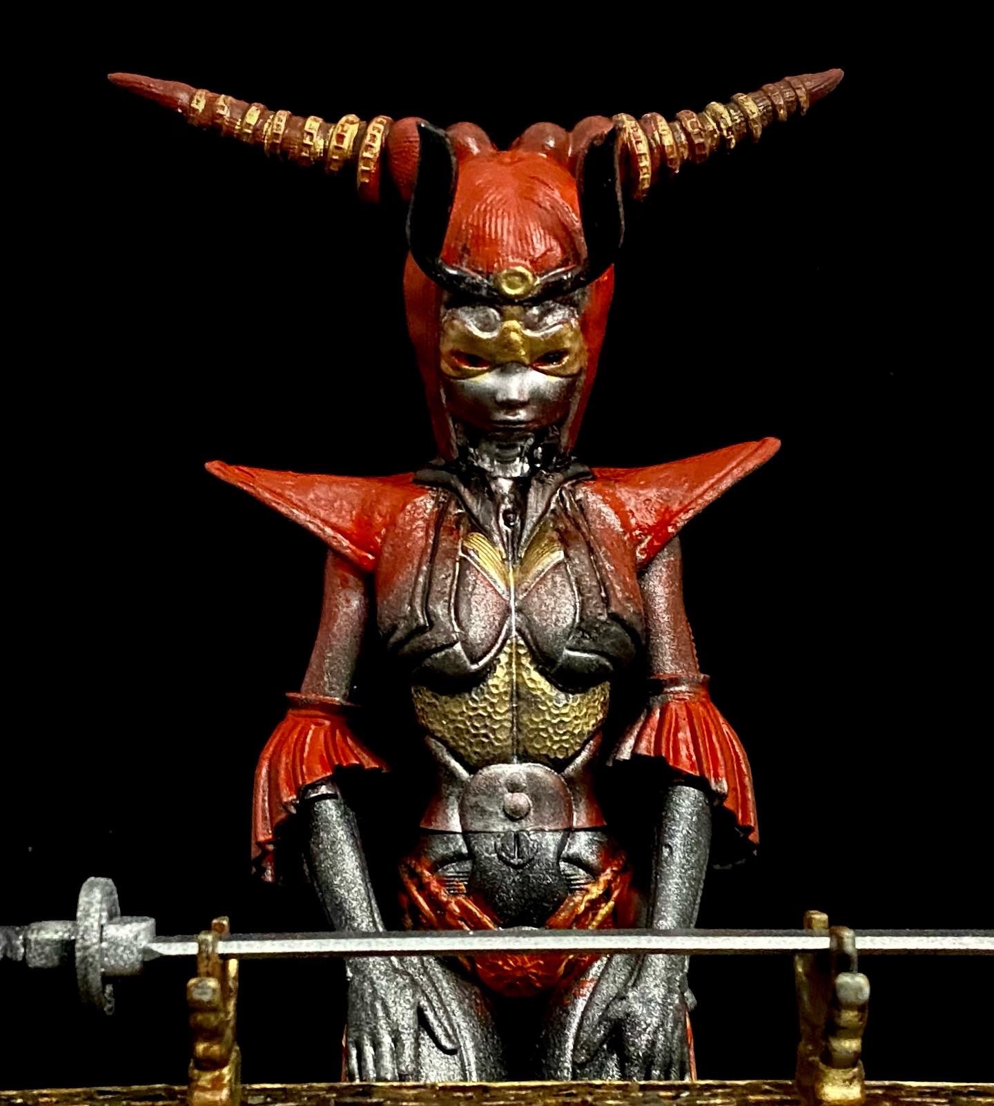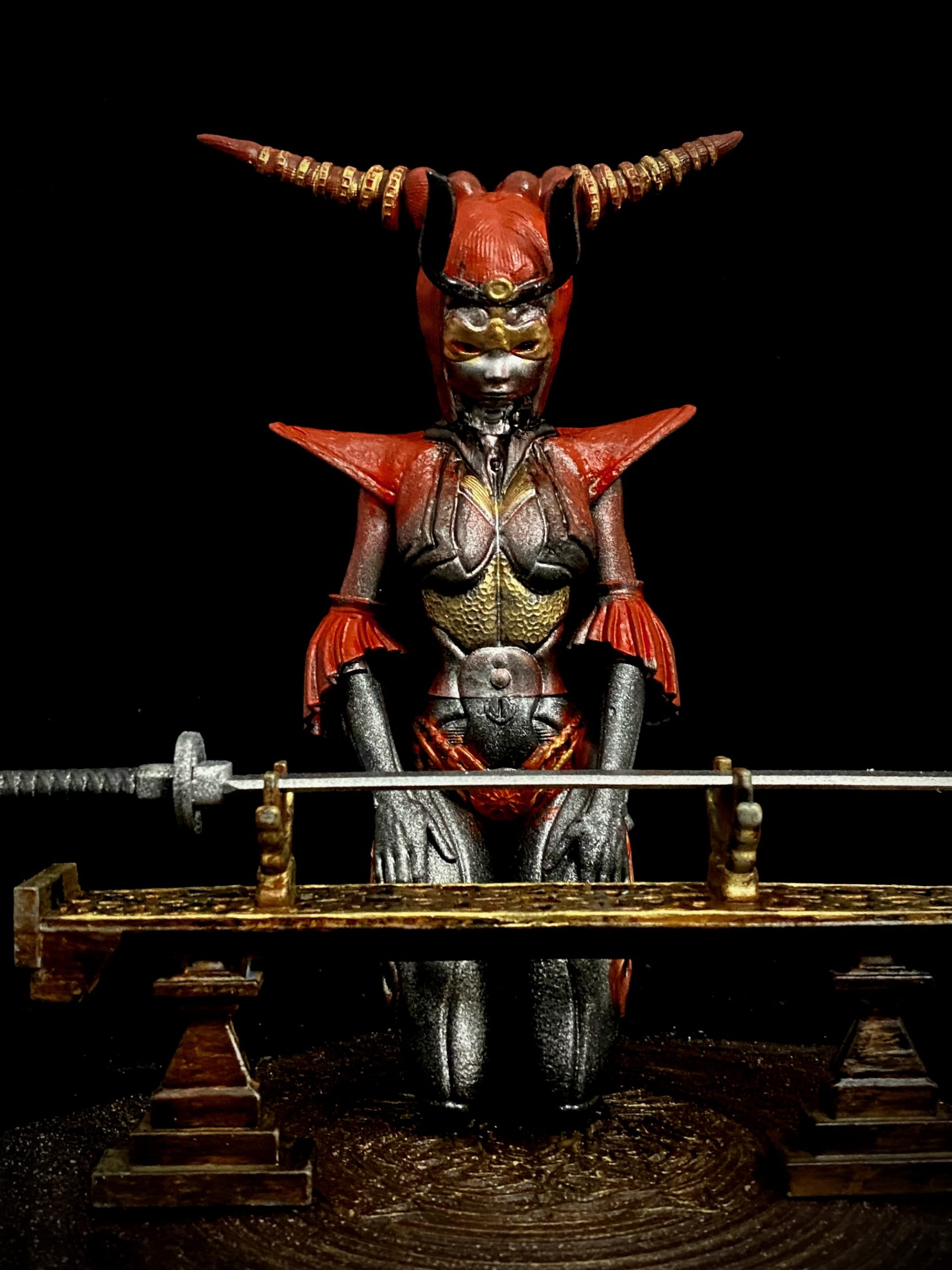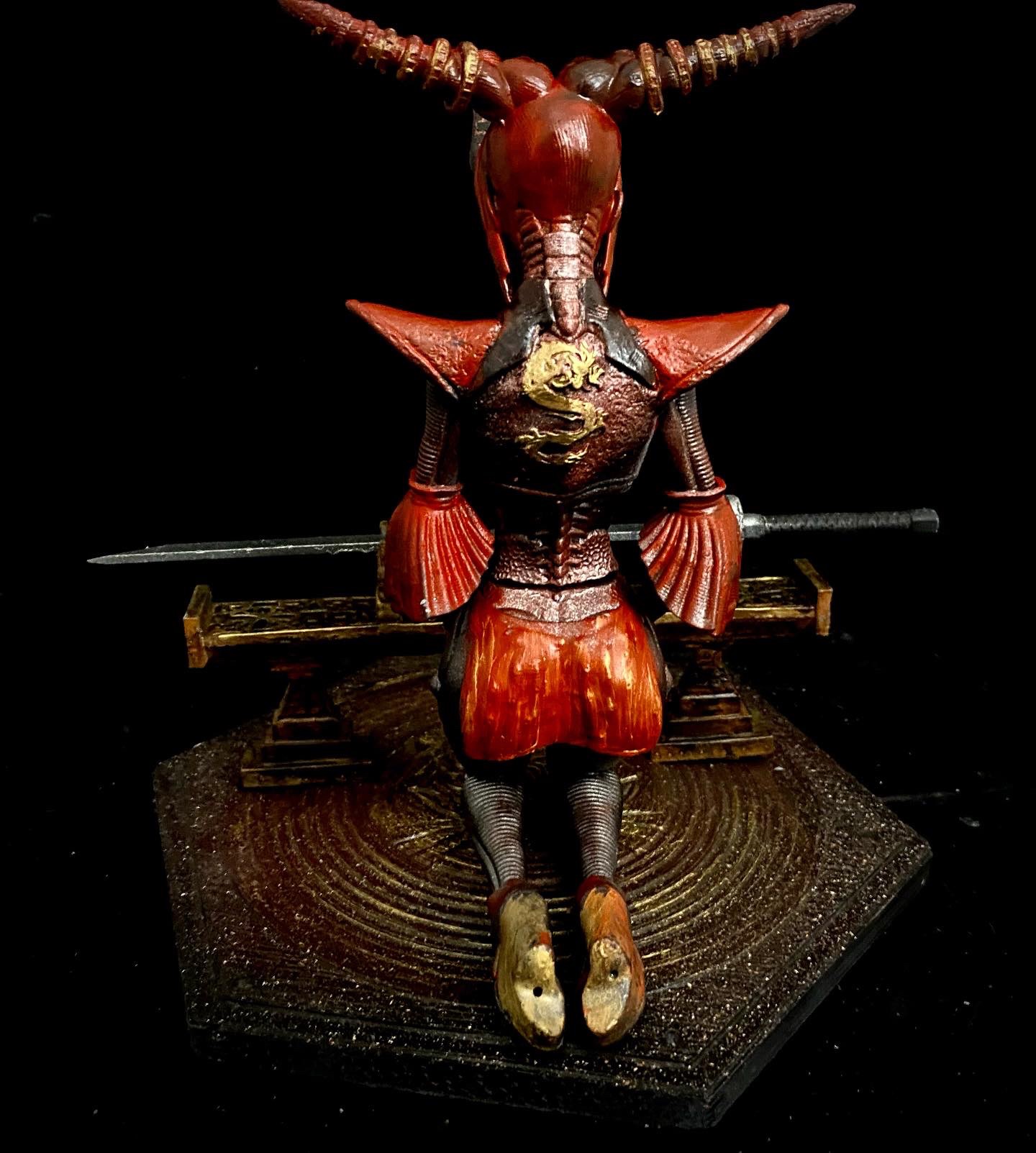 This is another beautiful piece by Walades, in which a samurai cyborg studies her blade. This is one that I turned into an NFT, back when that was a thing, by superimposing her into a background that seemed fitting.