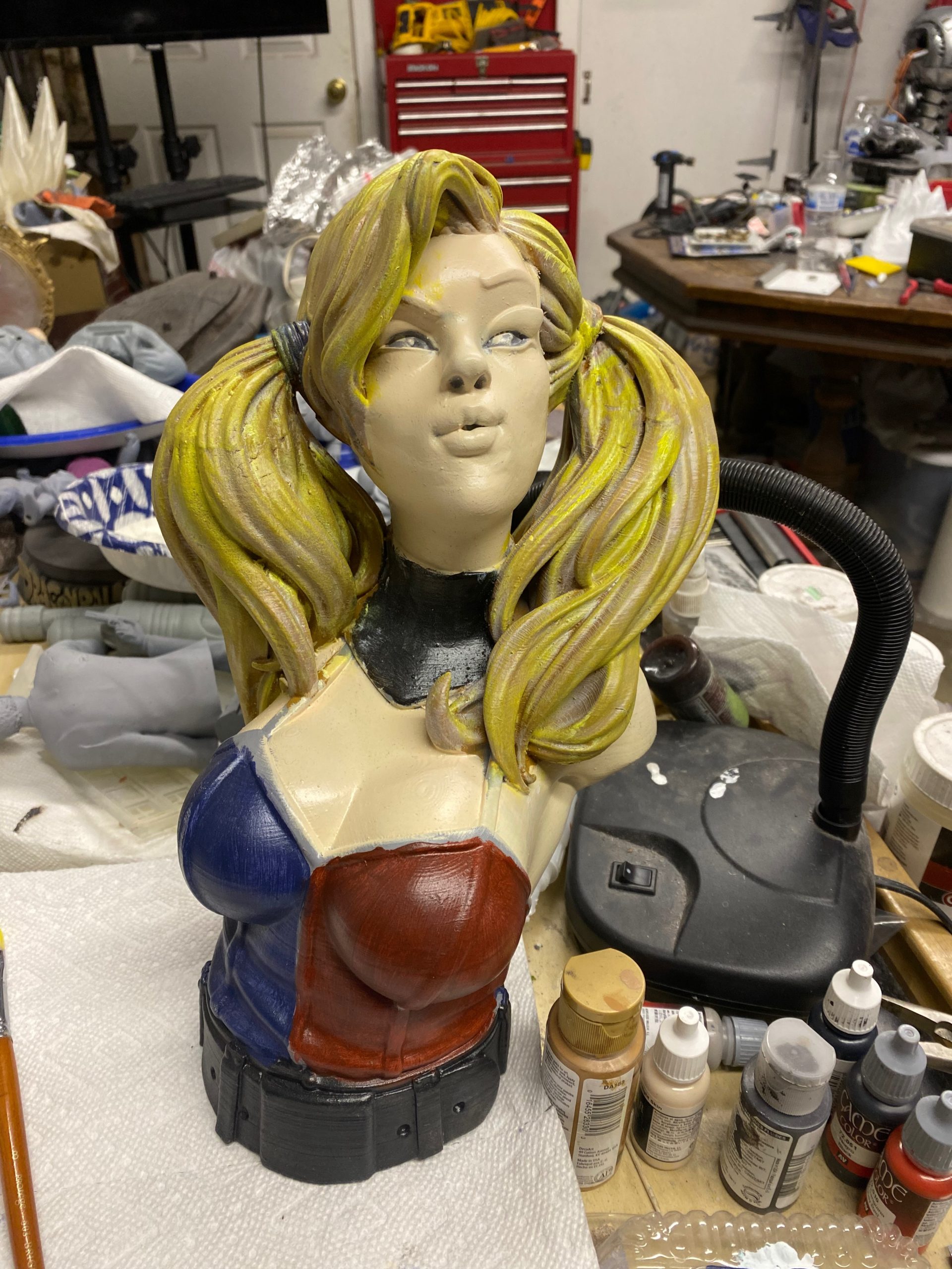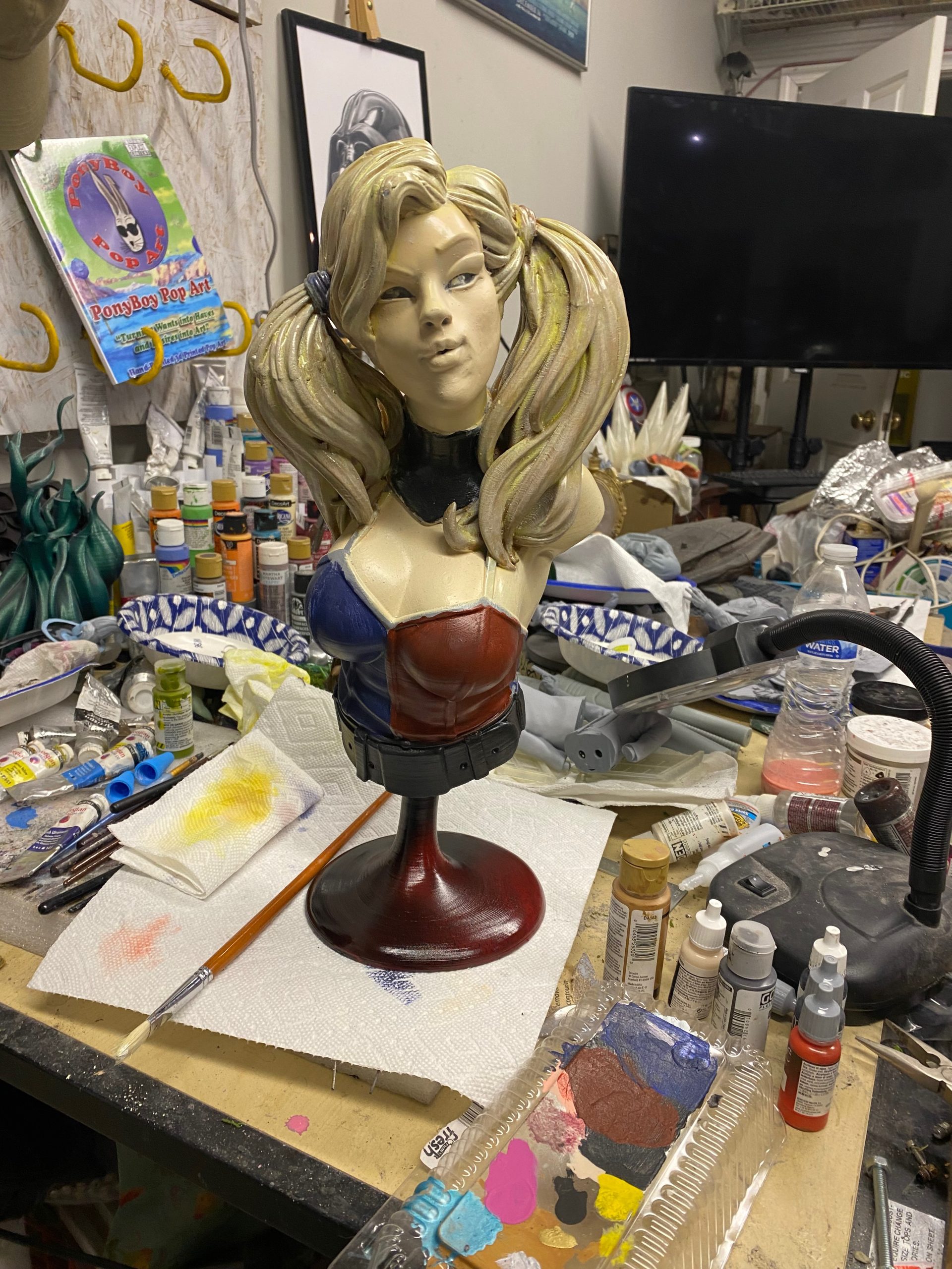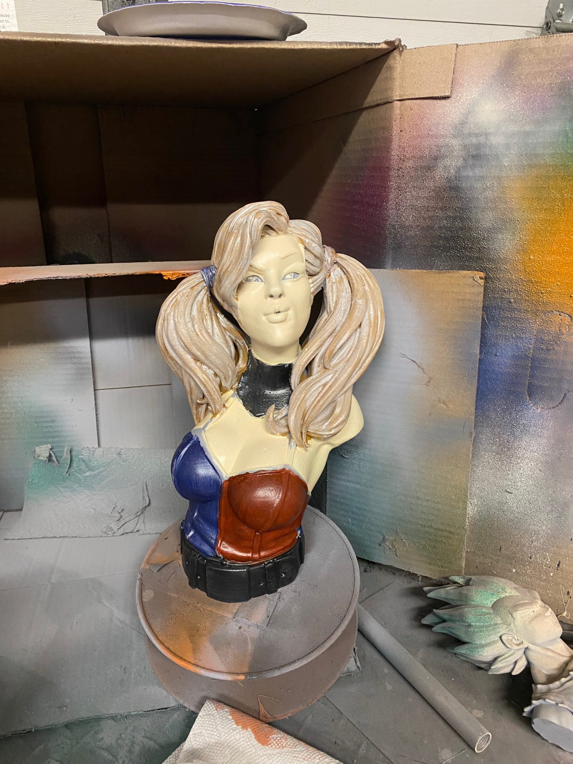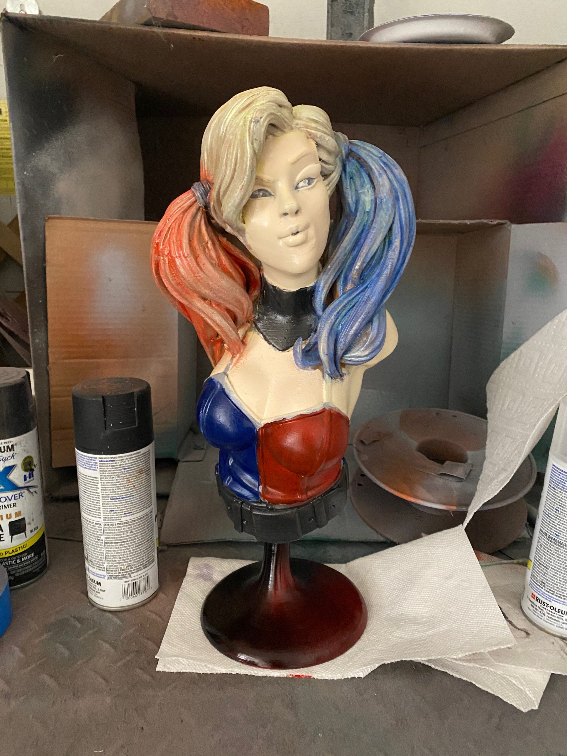 This is a beautiful digital sculpt by Eastman3d of one of our favorite villains, Harley Quinn. This bust stands over 14 inches tall. One of my favorite parts of painting Harley, is her hair. It is a constant reminder that the more layers of color you can add, the more realistic it becomes.