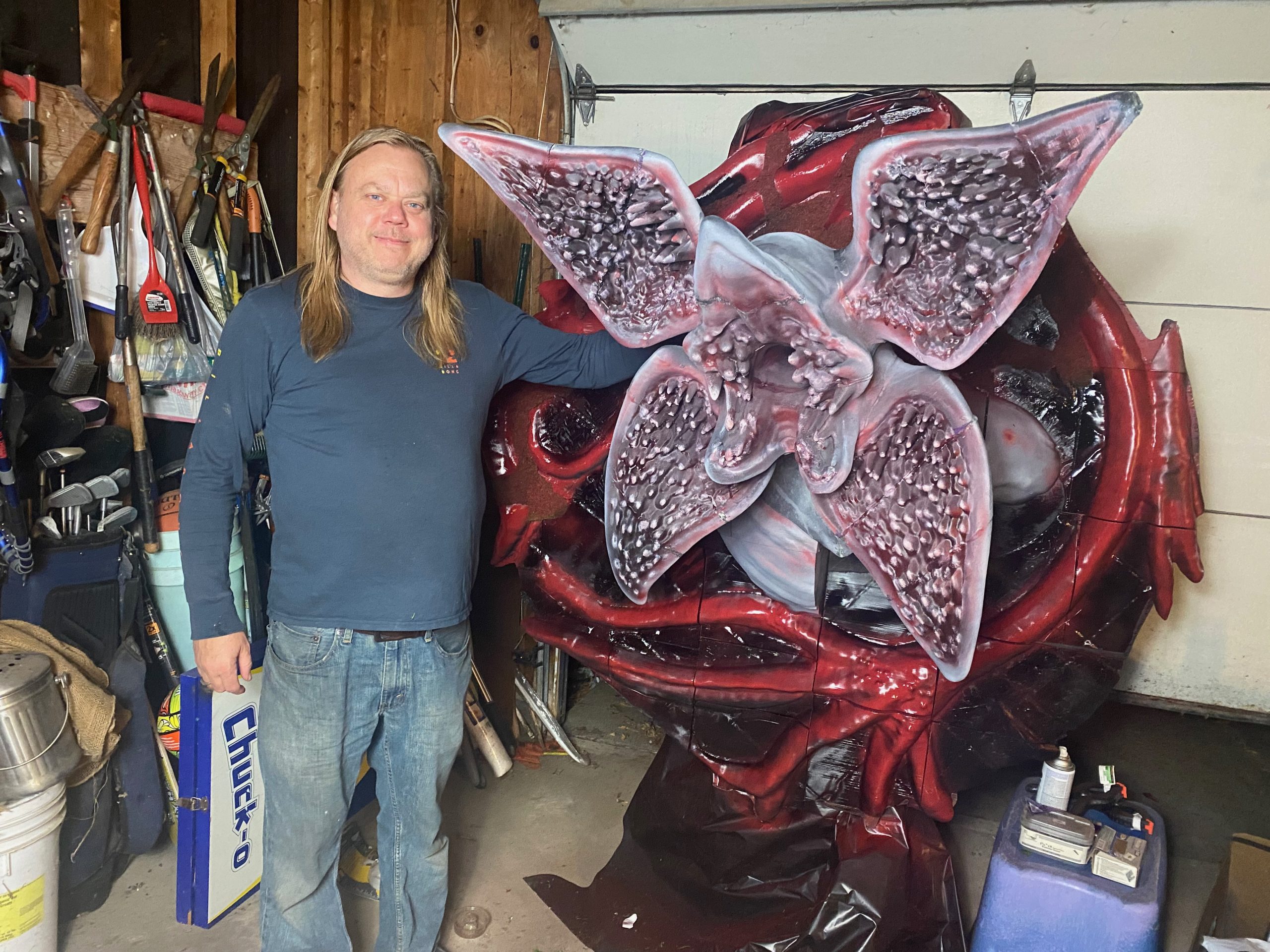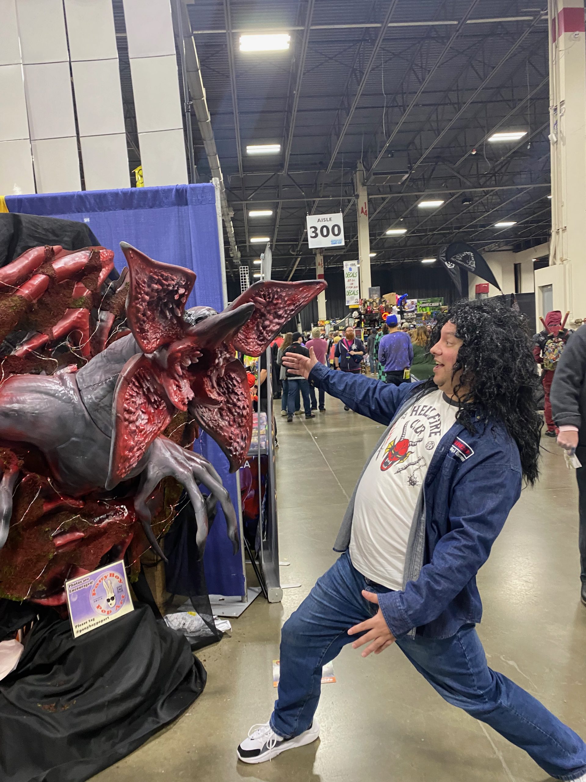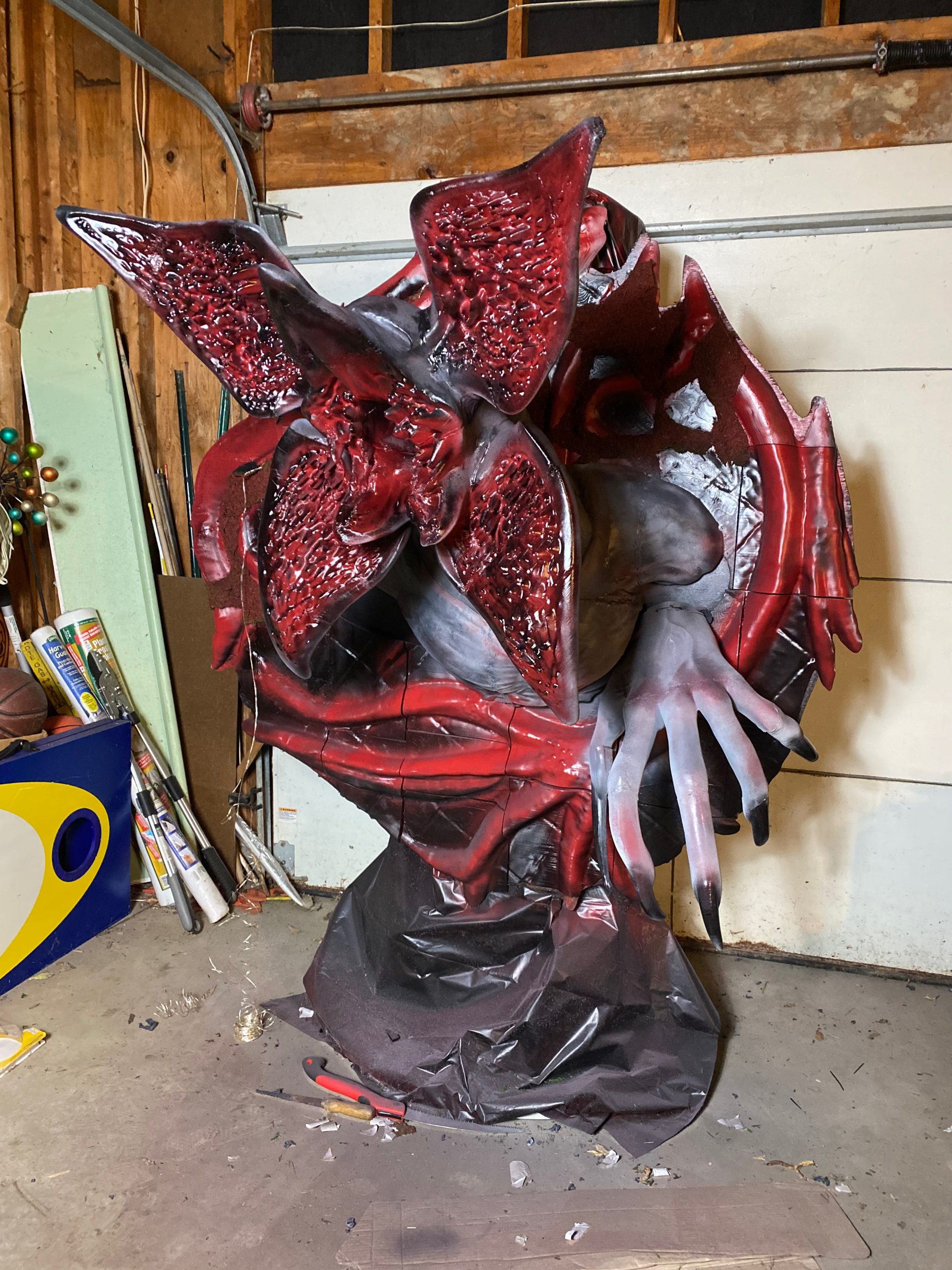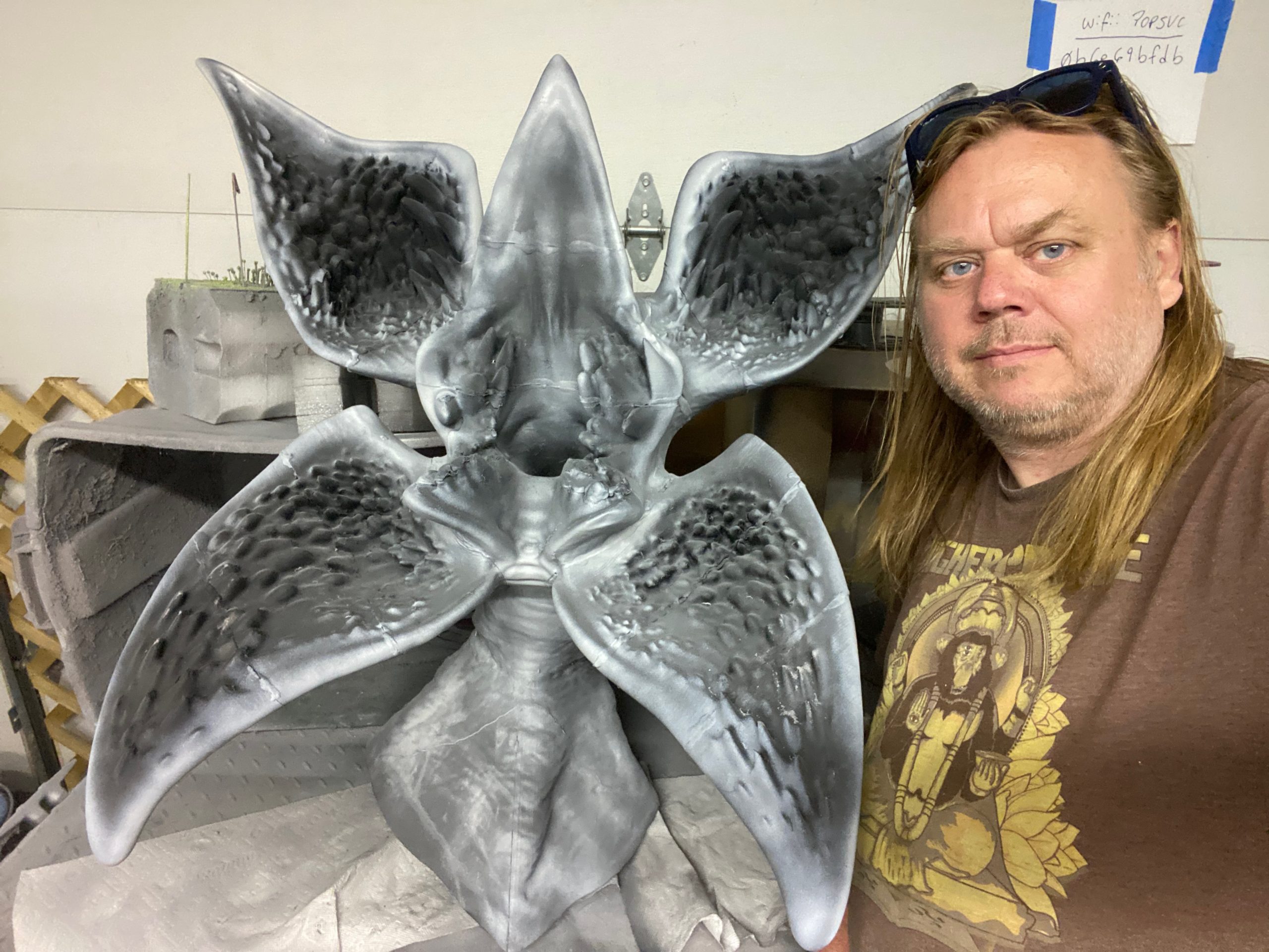 Our life-sized Demorogan statue has been seen on three different Detroit Morning News shows, twice on WXYZ Channel 7, and once on FOX-2 Detroit, as a reason for coming to the MotorCity ComicCon. As with my other lifesize pieces, this was as a “Passion Piece“. I originally planned on this being just the Demogorgan, and at a full 8 feet tall. Eventually, I decided to make it a wall hanging, and MeshMixed it with a tentacled base from a separate Stranger Things model. No surprise, its been a big hit with the fans.
