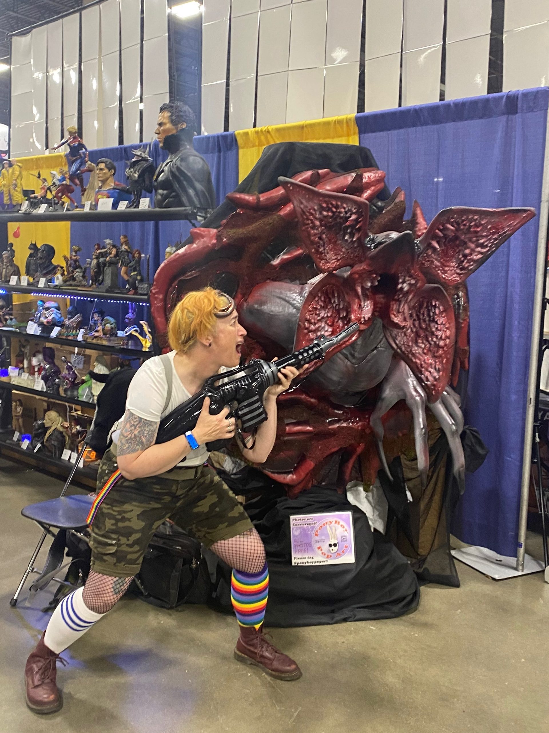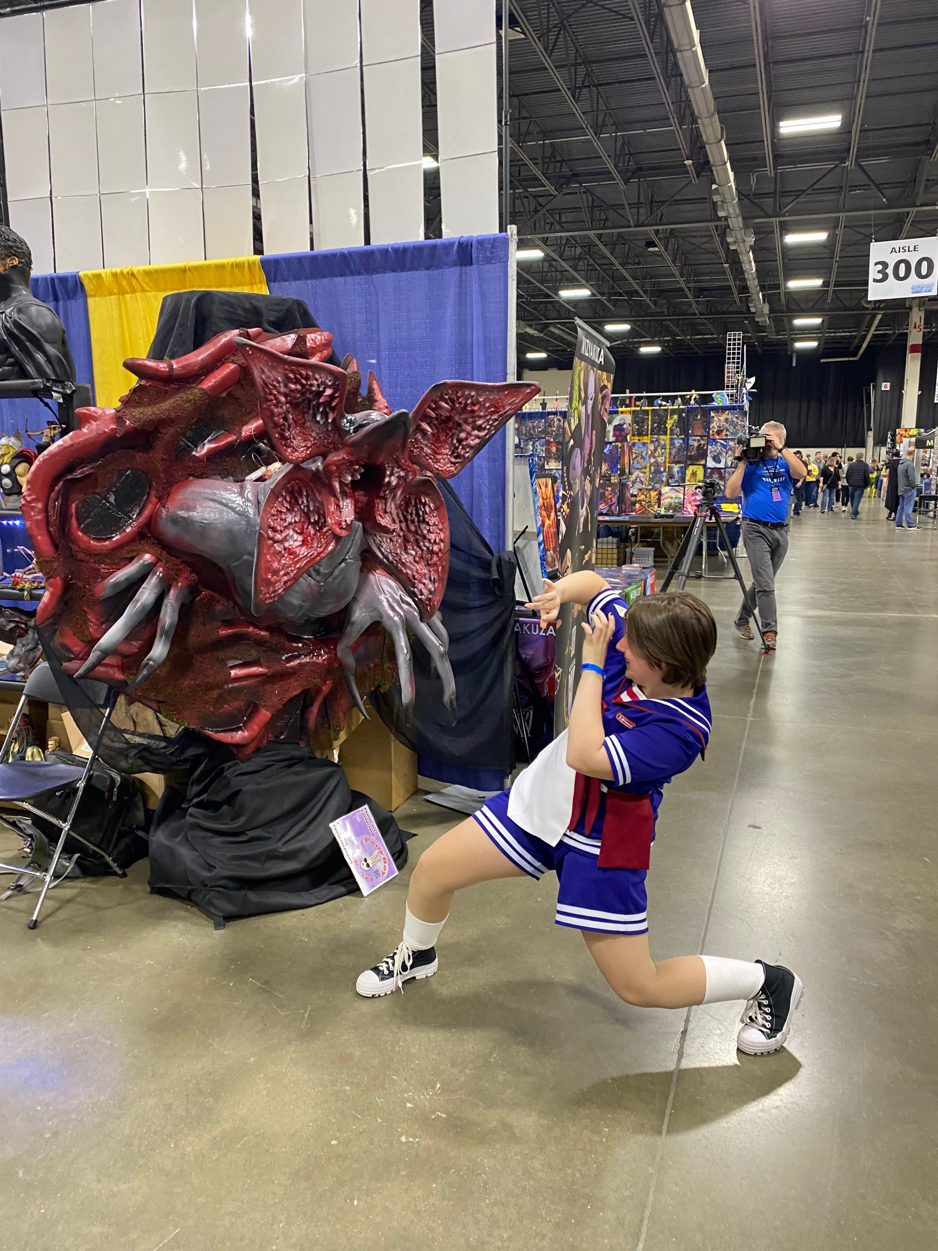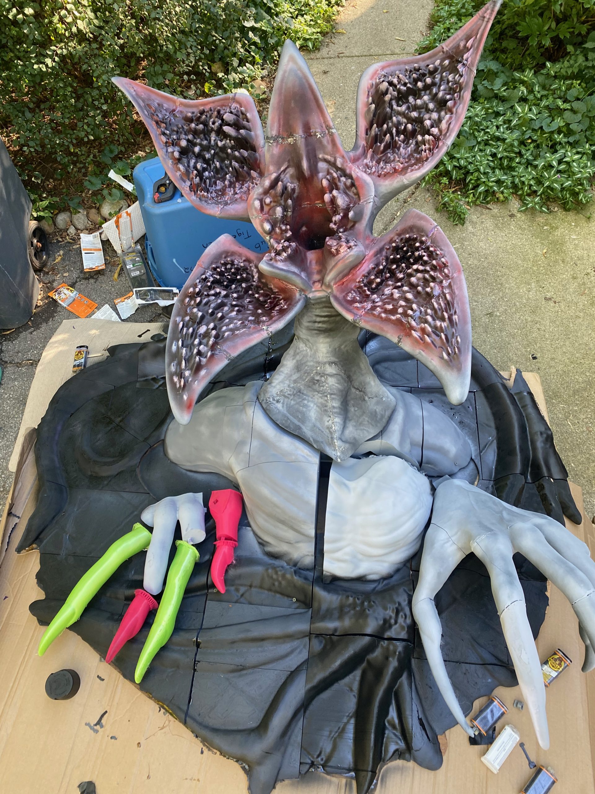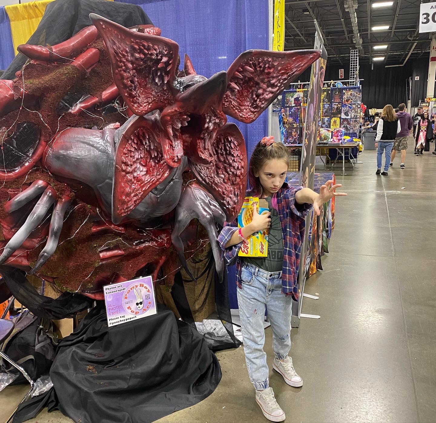 Our life-sized Demorogan statue has been seen on three different Detroit Morning News shows, twice on WXYZ Channel 7, and once on FOX-2 Detroit, as a reason for coming to the MotorCity ComicCon. As with my other lifesize pieces, this was as a “Passion Piece“. I originally planned on this being just the Demogorgan, and at a full 8 feet tall. Eventually, I decided to make it a wall hanging, and MeshMixed it with a tentacled base from a separate Stranger Things model. No surprise, its been a big hit with the fans.