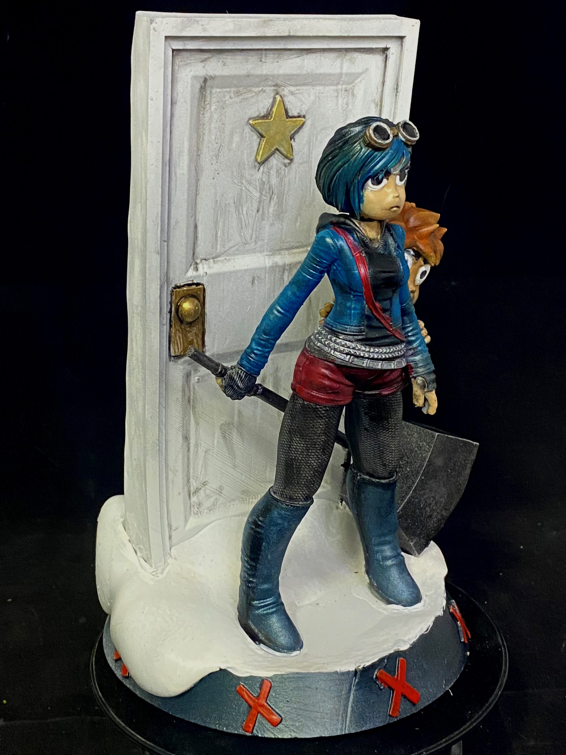 This is an awesome sculpt by NachoCG portraying Ramona and being carried on her back in a backpack, her boyfriend, Scott Pilgrim. Scott is well known for his movie, Scott Pilgrim vs The World, but few realize it started with a comic, and this portrayed how they were. I couldn’t part with this one, and it was a Christmas gift for my wife. I may do it again, especially if asked, as I do love the piece.