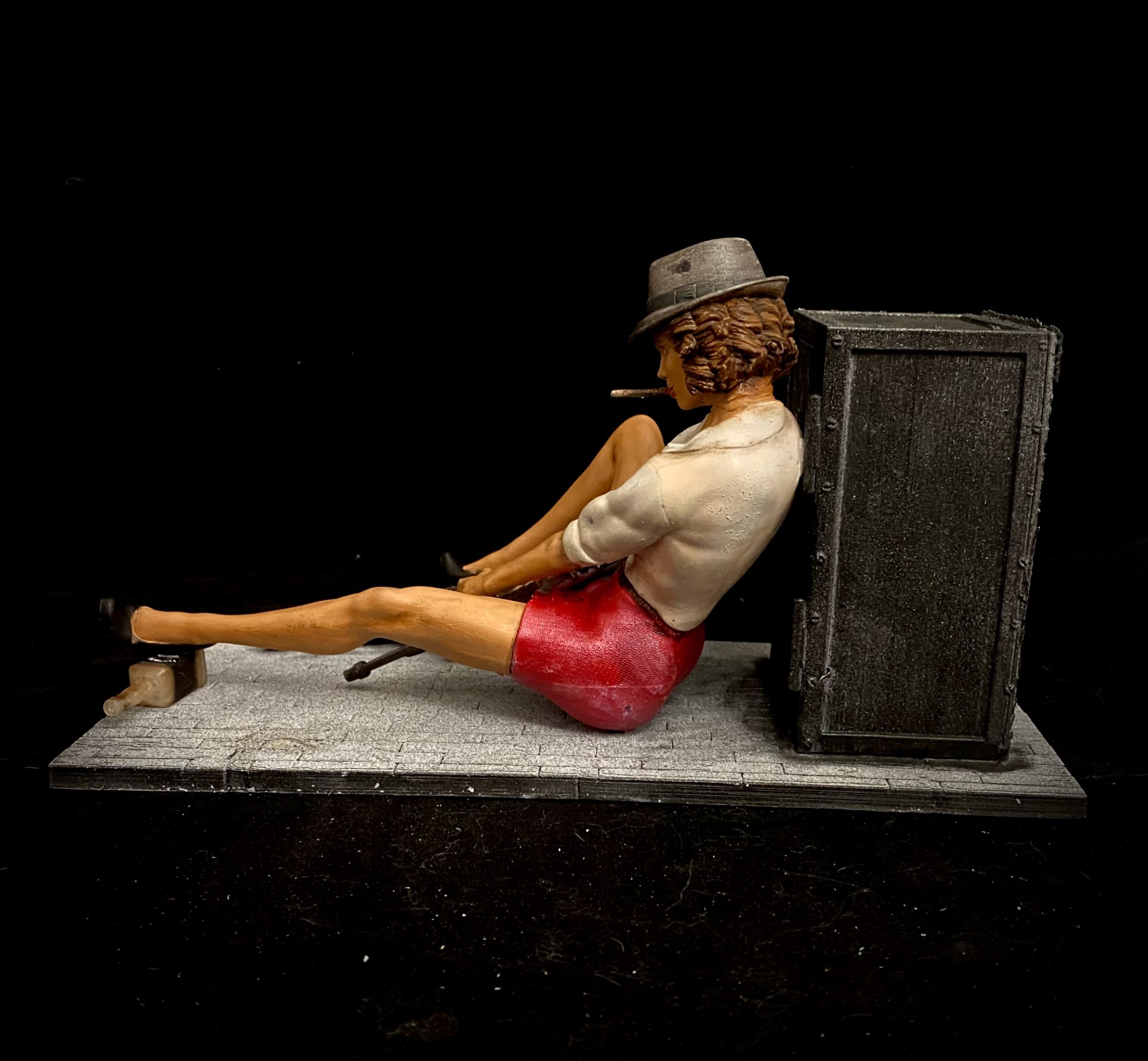 This is another beautiful sculpt by Walades, where our lead is sitting outside a bank vault, awaiting her partner in crime.