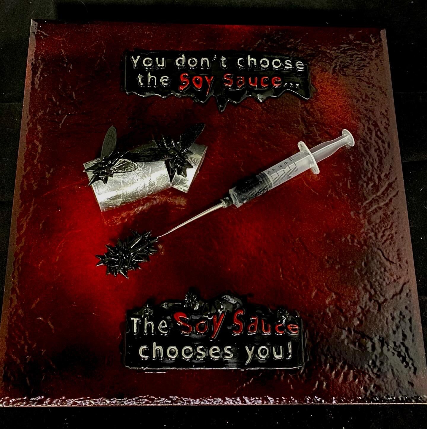 This piece is a PBPA Original, entitled, “You don’t choose the Soy Sauce…. the Soy Sauce chooses you!” This is a fanart piece made based on the inter-dimensional “alive” drug, called Soy Sauce in the book series and movie, “John Dies at the End”, written by David Wong, aka Jason Pargrin. This is the first piece that was based entirely on my own design and digitally sculpted by me.